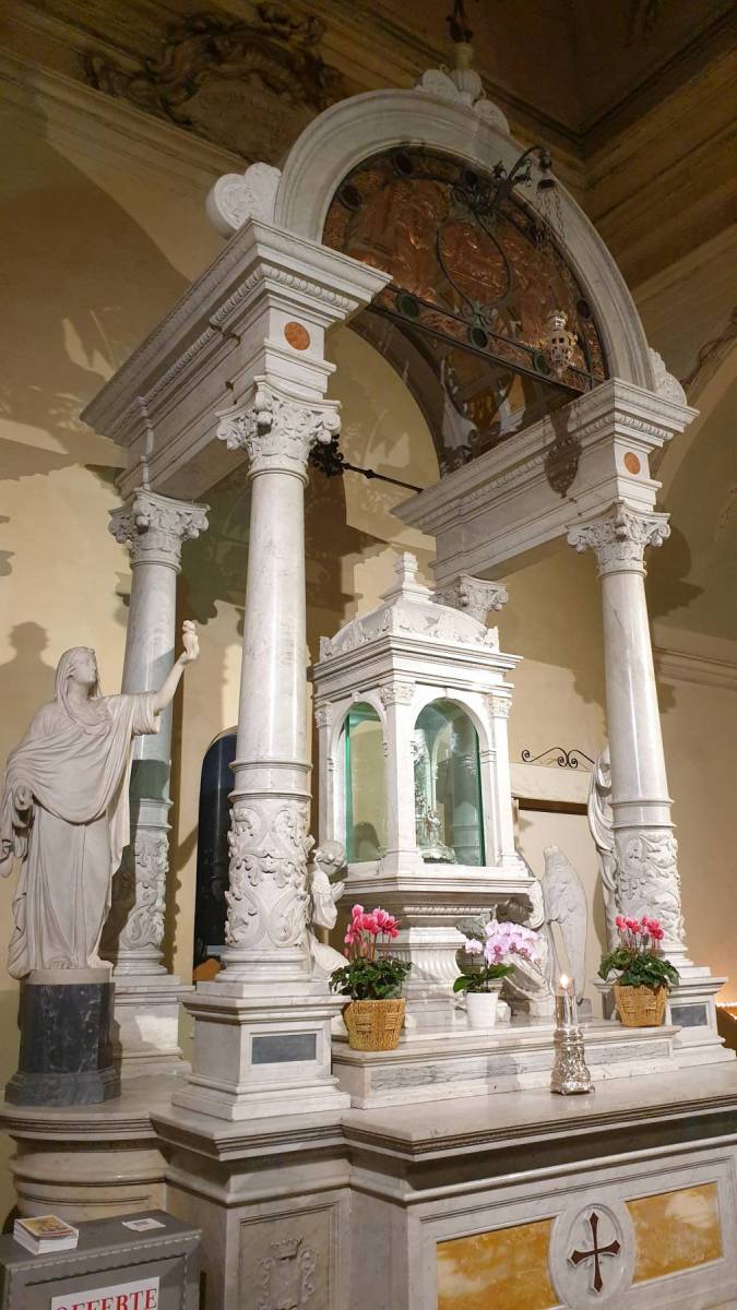 Völlig positiv überrascht besuchen wir noch die Santuario del Miracolo Eucaristico mit ihren Reliquien. Im 8. Jh. hatte ein Mönch während der Wandlung Zweifel an der wirklichen Gegenwart des Leibes und Blutes in Form von Brot und Wein gehabt. Daraufhin verwandelten sich dieselben in menschliches Fleisch und Blut. 1970 wurden die Reliquien von einer Expertengruppe analysiert und es wurde festgestellt, dass das Blut und Fleisch dieselbe Blutgruppe (AB) haben und Teile eines Herzmuskels sind. Für uns ist das interessante Zeitgeschichte und Teile einer großen Weltreligion.