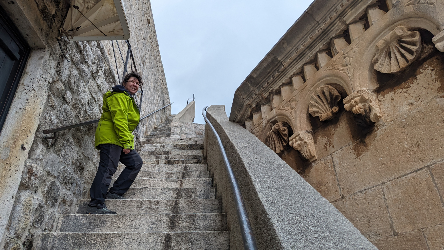 Dienstag soll es nur noch bewölkt sein und zwischendurch die Sonne rauskommen. Nur 25 km und schon stehen wir In Dubrovnik auf einem neu angelegten terrassenartigen Parkplatz. € 13,– sollen 24 Stunden kosten – alles rein digital mit Kennzeichenerkennung und Zahlung mit Karte. Am Nachmittag – nach dem Regen – machen wir einen Spaziergang zur 900 Meter entfernten Altstadt. Die Stadt liegt bekannterweise nicht nur sehr schön, ist auch sehr sehenswert. Die einzelnen Eintrittspreise, z.B. € 30,– im Sommer für die Begehung der Mauer, im Winter die Hälfte, sind schon arg happig. Im Winter bietet die Stadt aber den Dubrovnik-Tagespass für € 15,– an das ist fair. Der digitale Pass ermöglicht den kostenlosen Besuch der Mauer und aller wesentlichen Museen und Sehenswürdigkeiten. Wir entscheiden uns noch einen weiteren Tag zu bleiben. Es ist tatsächlich nicht voll, bis auf einige asiatische Reisegruppen. Nur das Wetter könnte besser sein. Ein sehr lohnenswerter Besuch, den wir zu Beginn der Reise nicht auf den Plan hatten.