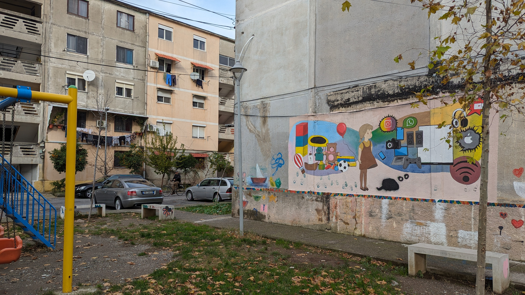 Wo uns in Kroatien sehr viele Straßenkatzen aufgefallen sind, ist das in Albanien jetzt extrem mit den Hunden. Sie laufen nicht nur überall herum und betteln, sie bewegen sich auch frei in der Stadt inklusive in den Einkaufszentren. Ein Hund stützt sich mit seinen Pfoten an die Fahrertür und guckt mich durchs Seitenfester an – er ist nicht ganz so klein…