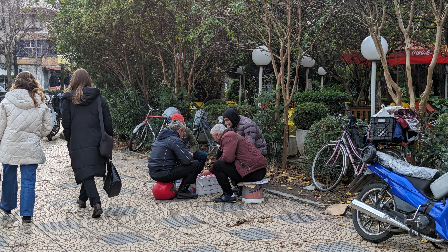 Wo uns in Kroatien sehr viele Straßenkatzen aufgefallen sind, ist das in Albanien jetzt extrem mit den Hunden. Sie laufen nicht nur überall herum und betteln, sie bewegen sich auch frei in der Stadt inklusive in den Einkaufszentren. Ein Hund stützt sich mit seinen Pfoten an die Fahrertür und guckt mich durchs Seitenfester an – er ist nicht ganz so klein…