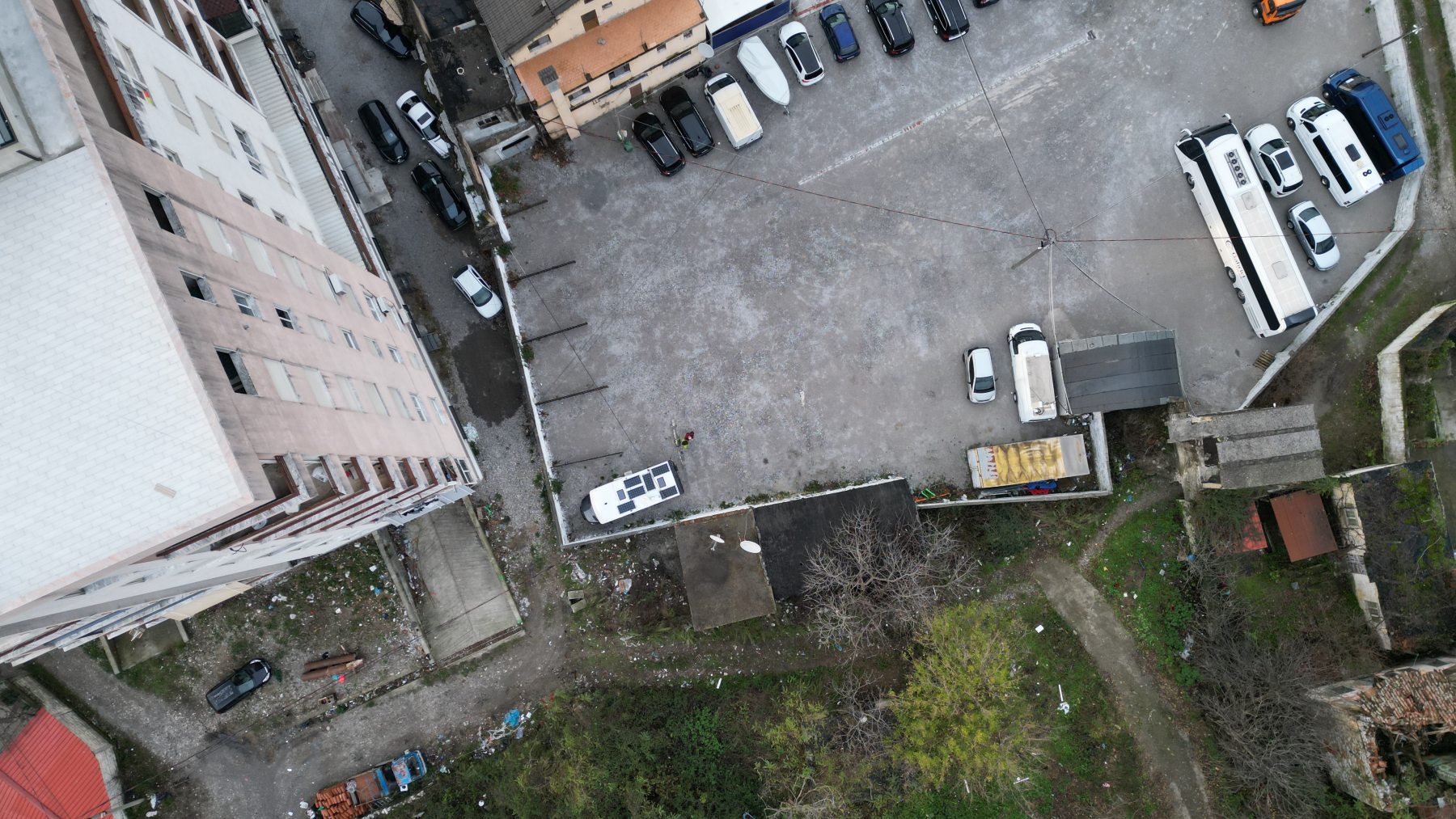 Weil wir erst bei durchgängigen Regen um 16.30 Uhr – im Halbdunkeln – ankommen, bleiben wir zwei Nächte auf einem offiziellen Stellplatz zwischen Burg und Stadt. Die Lage lohnt sich, etwas genauer zu beschreiben: An einem Kreisverkehr, direkt hinter einer Autowaschanlage. Neben uns ein marodes Hochhaus und eine leere Hausruine. Hinter der Abgrenzungs-Mauer steht ein Schrottauto und liegt bergeweise Müll. Wie gesagt, wir bleiben zwei Nächte, € 12,– die Nacht, inkl. Strom, Wasser und WLan.