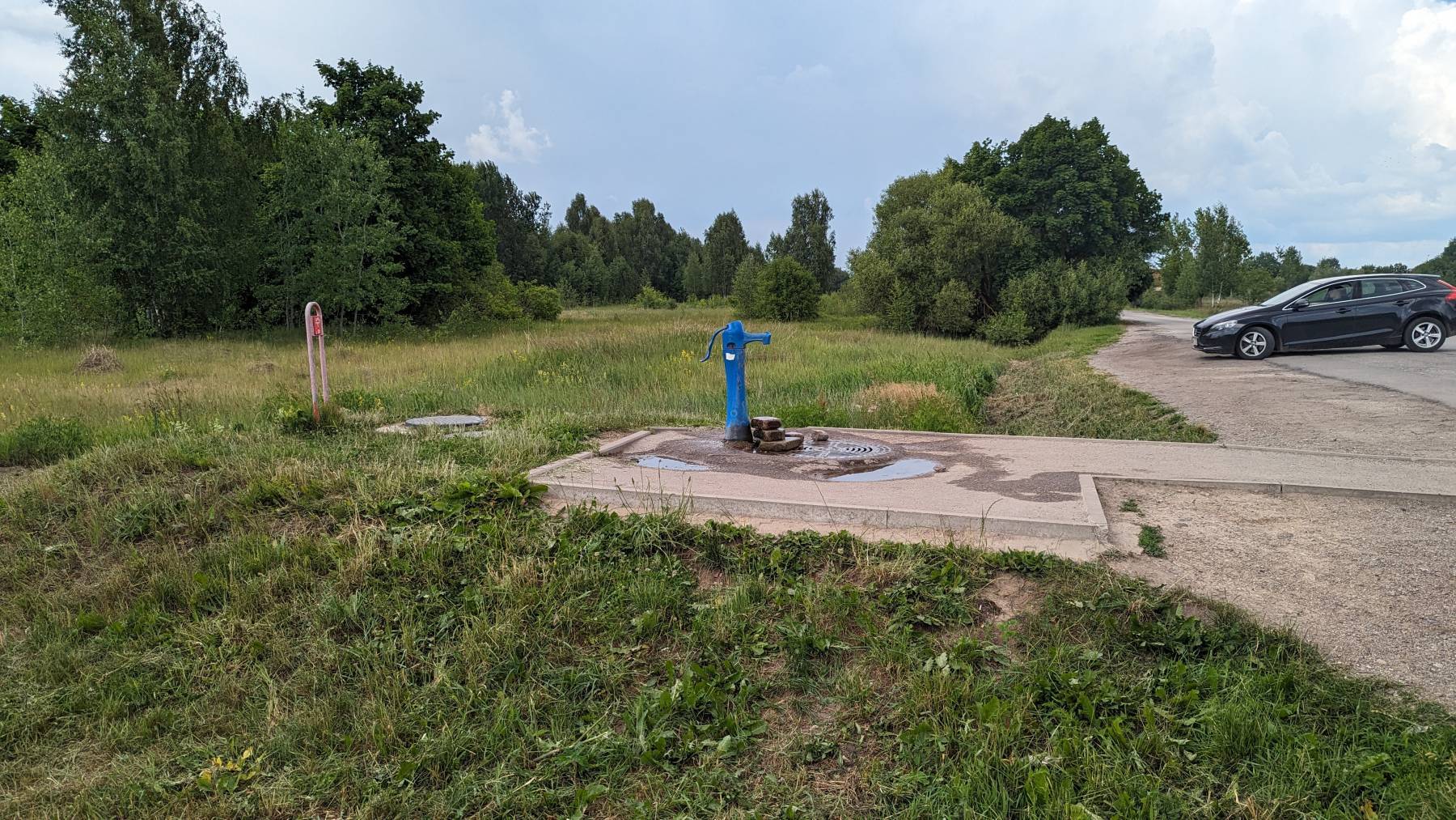 Bereits in Polen ist die Versorgung mit Wasser nicht immer ganz so einfach gewesen. Das ist in Litauen jetzt noch schlechter. Die meisten besorgen sich das wichtige Gut an Tankstellen, haben wir in Schweden auch schon gemacht, ist wohl meist Trinkwasser. Hier finden wir in Siauliai eine blaue Wasserzapfstelle mit Handpumpe. Nur wir sind nicht alleine, nein keine Wohnmobile stehen Schlange, sondern ausschließlich Einheimische mit großen Vorräten an Wasserbehältnissen. Wir erfahren, dass das Wasser sehr gut sein soll, scheint so, was der ununterbrochene Ansturm beweist.