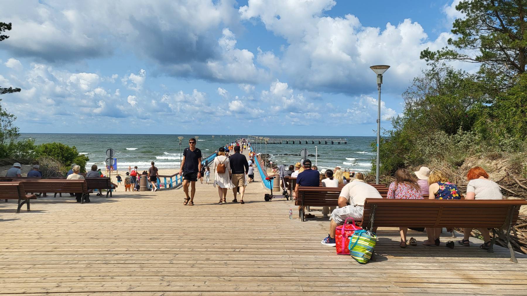 Den Badeort Palanga haben wir uns für eine intensivere Betrachtung ausgesucht. Es ist Freitag, 25 Grad und es sind Ferien – in den baltischen Ländern rund 12 Wochen, und es ist voll, sehr voll. Kirmesbuden, unzählige Fress- und Krempelstände säumen die Fußgängerzone. Hier gibt es mehr geräucherten Fisch als Kebabbuden und weniger Softeisstände als in Polen. Die Preise sind hier aber genauso hoch.