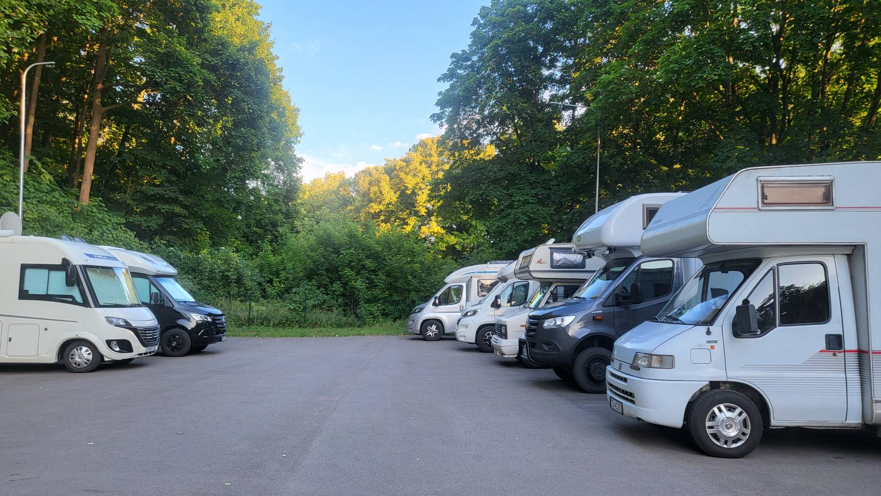 In Litauen haben wir uns als ersten Platz eine Picknickstelle am See herausgesucht. Keine gute Idee. Das Thermometer zeigt 30 Grad und in Litauen ist Feiertag. Die Autos parken bereits auf den Straßen und an dem See wird überall wild gecampt und gegrillt. Aber an einem Fischräucherstand kommt ein erstes Aha-Erlebnis: Der Verkäufer trägt ein FC Trikot. Ein sympathisches Land…