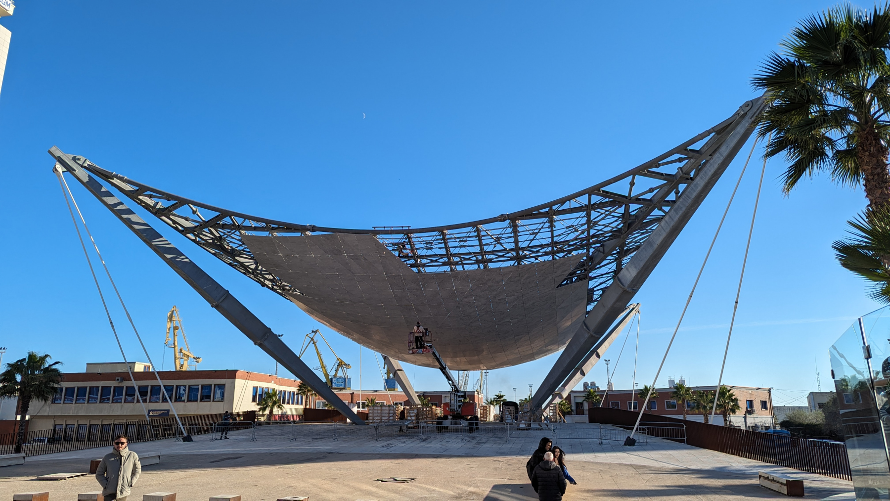 Die Hauptstadt Tirana wollen wir auslassen. Die Stadt soll verkehrsmäßig chaotisch sein und interessiert uns nicht wirklich. Campingplätze oder ähnliches gibt es nur außerhalb. In die Stadt müssten wir 40 Minuten mit dem Bus, bei aufkommender Erkrankungswelle hätten wir dazu auch keine Lust. Dafür fahren wir an die Küste, nach Durres, soll schön sein und lockt mit einem römischen Amphitheater. Wir finden zentrumsnah einen Parkplatz, spazieren auf dem neu angelegten breiten Boulevard, gehen zum Theater und zum venezianischen Turm und zurück zum Parkplatz. Einen richtig netten Eindruck gewinnen wir nicht. Viele ruinöse Bauten und Müll und Industriehafen bleiben eher hängen.