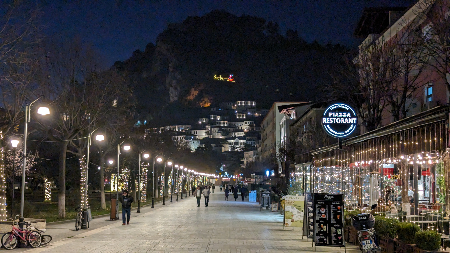 An sich wollten wir Weihnachten schon in Griechenland sein. Wir fühlen uns in Albanien aber wohl und wollen uns noch zwei Sachen angucken: Das „Blue Eye“ und eine weitere Stadt, welche auf der UNESCO-Liste steht, Gjirokaster. Beides absolut sehenswert. Die Altstadt von Gjirokaster gefällt uns von allen besuchten Ortschaften dann auch am besten und wirkt sehr lebendig, wenn es auch am touristischsten ist.