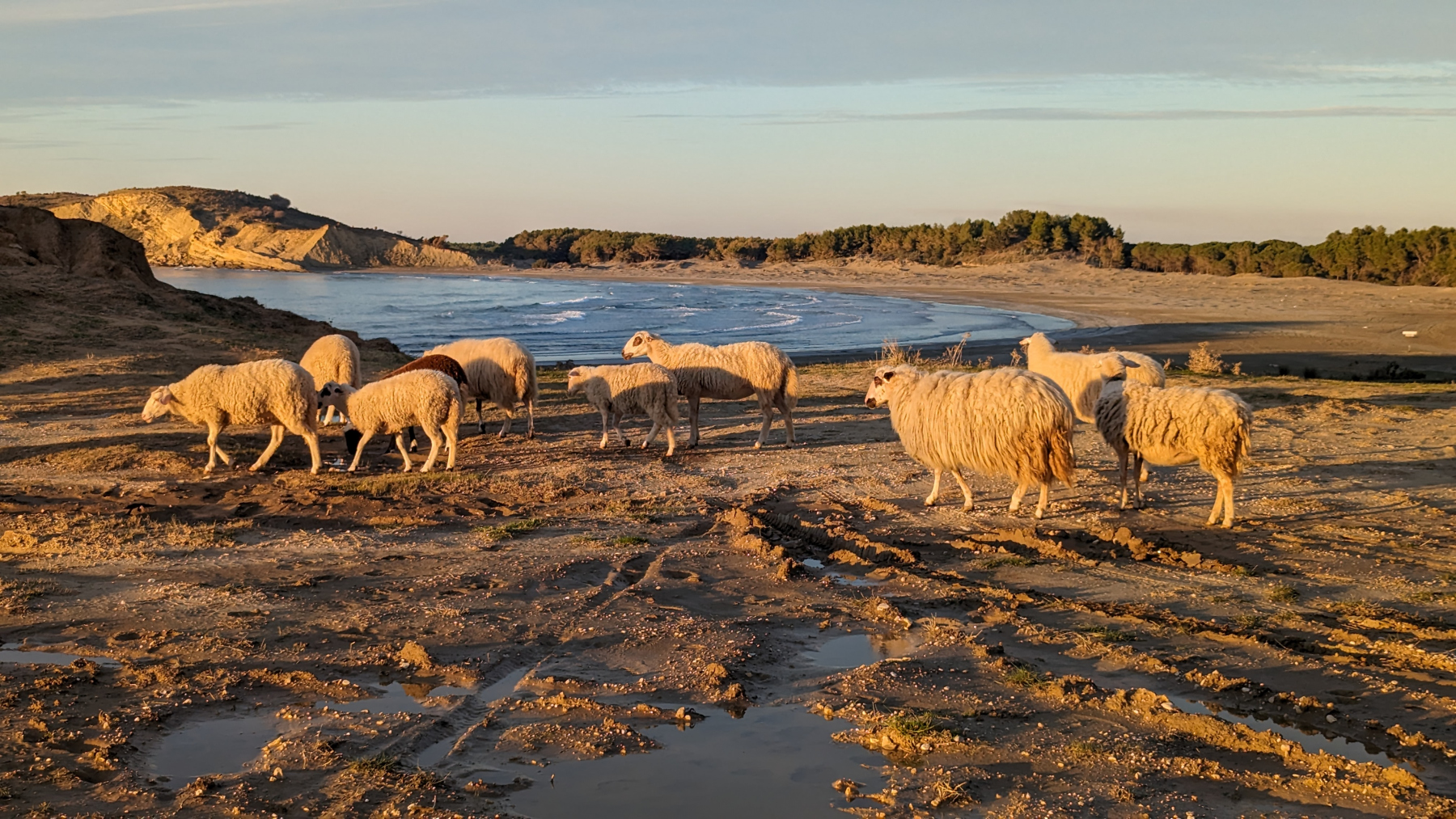 Nach so viel Kultur geht es wieder an die Küste. Die Lagune von Nartes, bei Vlora, ist sehr beliebt bei dem stark zugenommenen Wohnmobiltourismus. Weite Sandstrände mit klarstem Wasser und unzähligen Stellplatzmöglichkeiten tauchen in allen YouTube-Videos der Albanienreisenden auf. Als wir ankommen, nach 2 km übelster offroad-Strecke, sind wir aber wieder mal die Einzigen. Warum sich in unserer letzten Nacht ein polnischer Vanlifer mit seinem VW Bully genau auf dem sehr kleinen Teilstück zwischen uns und dem Abhang stellt, wird uns ein ewiges Rätsel bleiben.