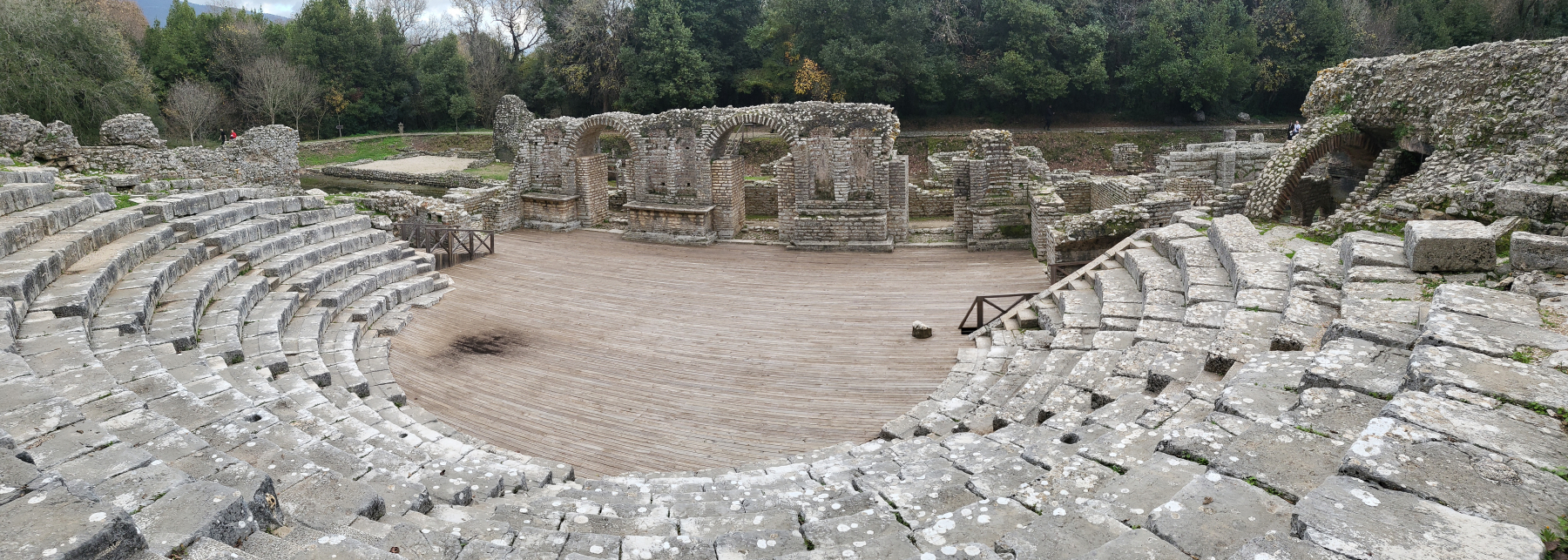 Wir entscheiden uns die Küste entlang zu fahren, mit Pässen und sehr anspruchsvoller Strecke. Wir kommen an den einzigen „blau geflaggten“ Stränden Albaniens vorbei. Es wird extrem viel gebaut, Hotels und ganze Feriensiedlungen. Saranda ganz im Süden ist für uns dann das Grauen. In den Außenbereichen Slums und Dreck, am Wasser tolle Promenaden, alles dicht gebaut und es wird noch weiter gebaut. Butrint, Albaniens bedeutendste Ausgrabungsstätte ist unser Ziel.