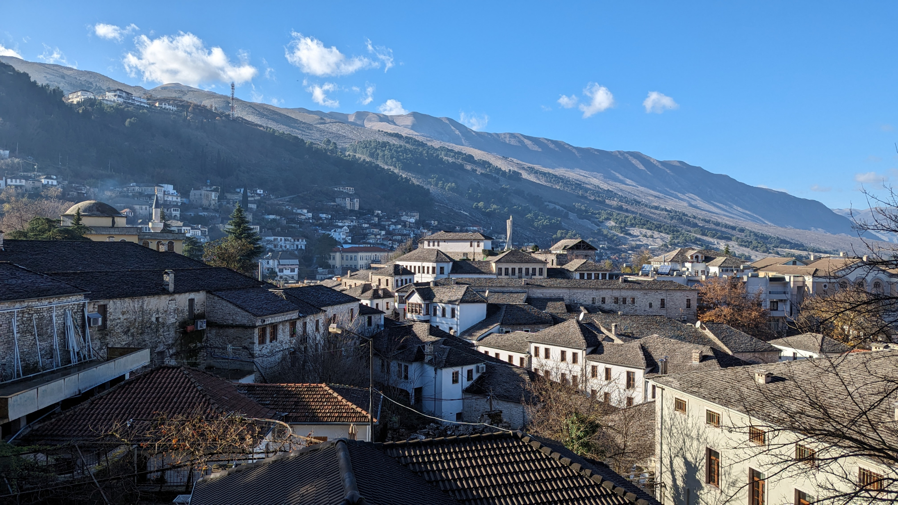 An sich wollten wir Weihnachten schon in Griechenland sein. Wir fühlen uns in Albanien aber wohl und wollen uns noch zwei Sachen angucken: Das „Blue Eye“ und eine weitere Stadt, welche auf der UNESCO-Liste steht, Gjirokaster. Beides absolut sehenswert. Die Altstadt von Gjirokaster gefällt uns von allen besuchten Ortschaften dann auch am besten und wirkt sehr lebendig, wenn es auch am touristischsten ist.