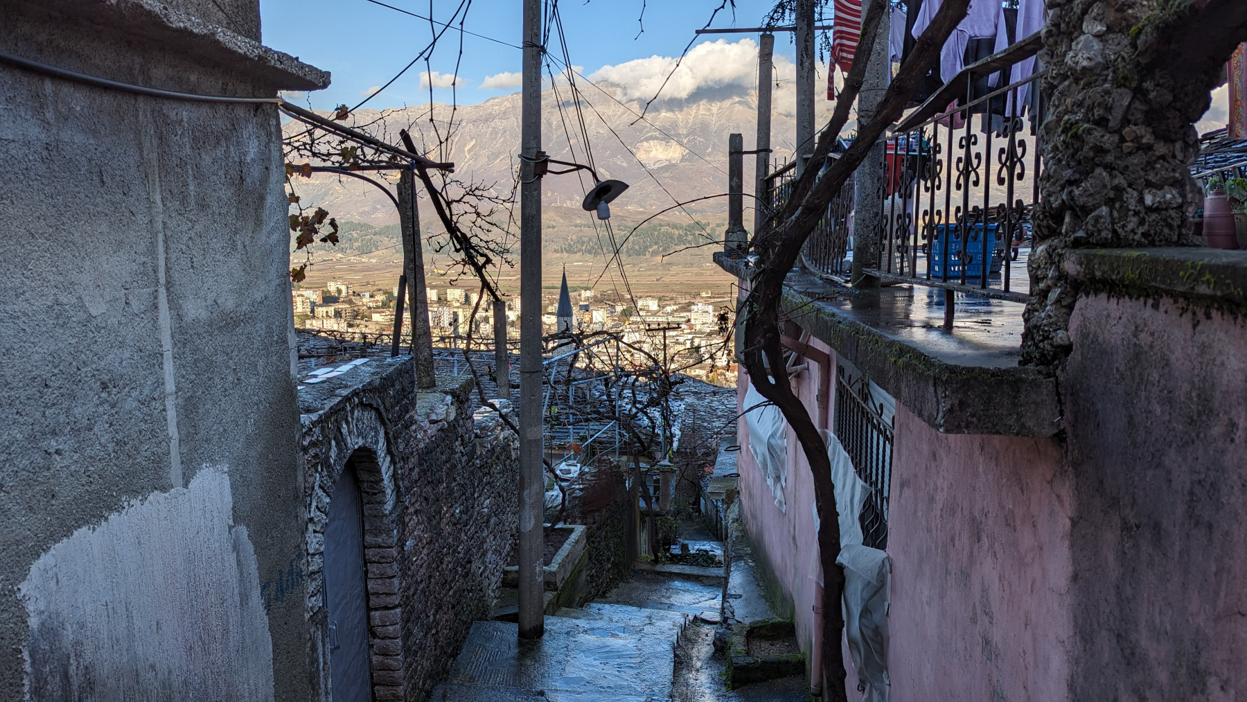 An sich wollten wir Weihnachten schon in Griechenland sein. Wir fühlen uns in Albanien aber wohl und wollen uns noch zwei Sachen angucken: Das „Blue Eye“ und eine weitere Stadt, welche auf der UNESCO-Liste steht, Gjirokaster. Beides absolut sehenswert. Die Altstadt von Gjirokaster gefällt uns von allen besuchten Ortschaften dann auch am besten und wirkt sehr lebendig, wenn es auch am touristischsten ist.