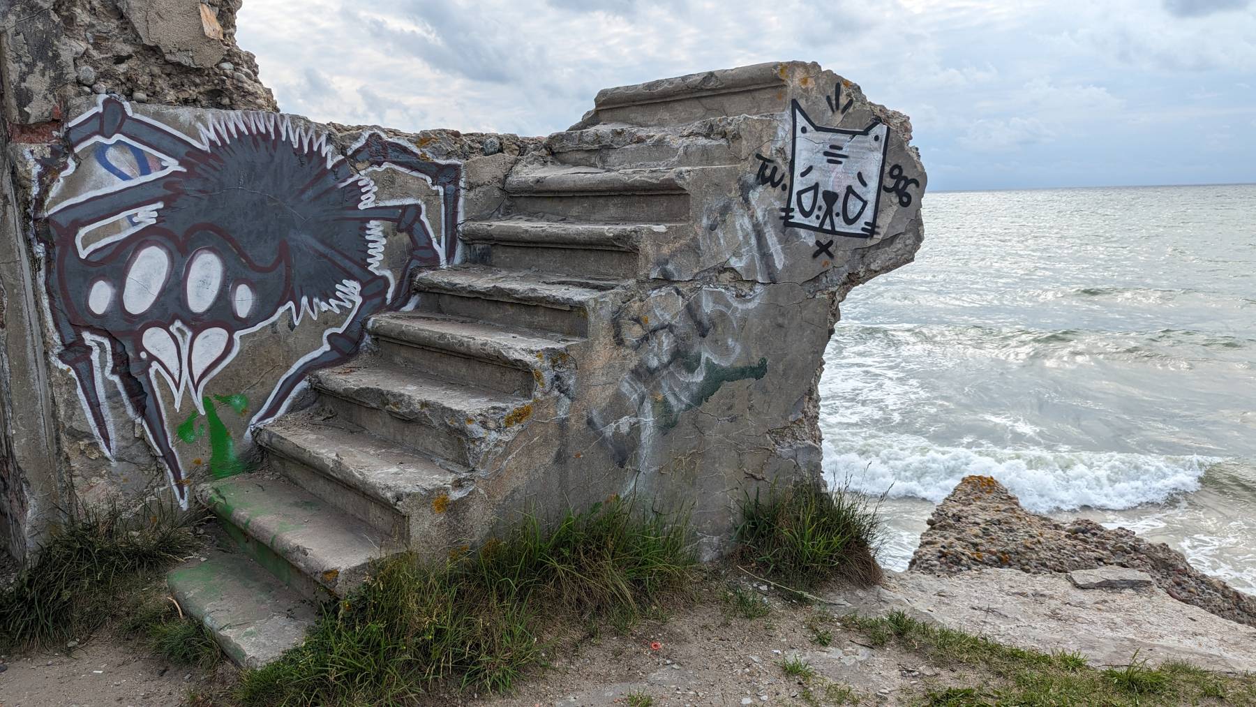 Wir kommen nach Liepaja, ein Ort der zu sowjetischer Besatzungs-Zeit komplett abgeriegelt war. Wir lesen, dass der Süden schöner als der Norden sein soll. Ja, das ist er, hässlicher als der Norden geht nicht. Bereits der Süden ist hässlich, viel alte Bebauung und unrenoviert. Der Norden ist einfach nur beklemmend. Unrenovierte, nein heruntergekommene, 6-stöckige langgezogene Wohnblöcke aus russischer Zeit, die auch noch bewohnt sind und viele Ruinen. Kein Ort, der zum Verweilen einlädt. Wir gucken uns aber das „Nord-Fort“ an. Ruinen der russischen Befestigungsanlage, die heute teilweise ins Meer ragen. Eine erschütternde Anlage oder besser Betonwüste.