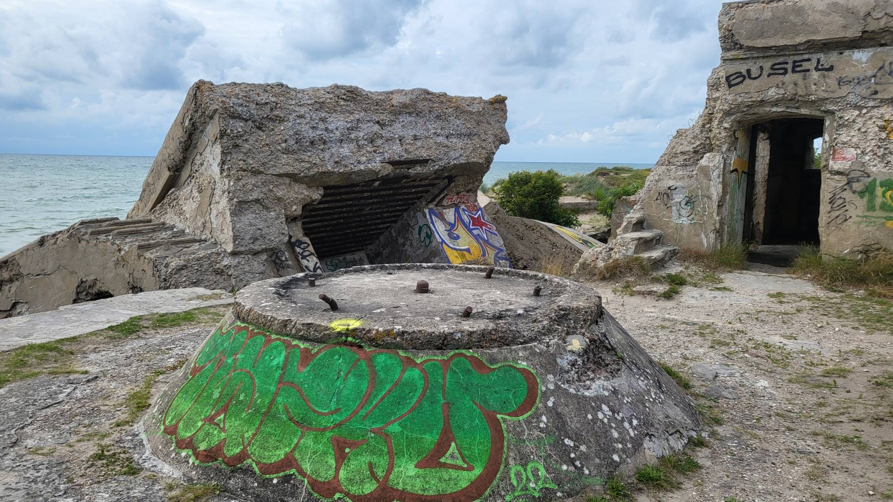 Wir kommen nach Liepaja, ein Ort der zu sowjetischer Besatzungs-Zeit komplett abgeriegelt war. Wir lesen, dass der Süden schöner als der Norden sein soll. Ja, das ist er, hässlicher als der Norden geht nicht. Bereits der Süden ist hässlich, viel alte Bebauung und unrenoviert. Der Norden ist einfach nur beklemmend. Unrenovierte, nein heruntergekommene, 6-stöckige langgezogene Wohnblöcke aus russischer Zeit, die auch noch bewohnt sind und viele Ruinen. Kein Ort, der zum Verweilen einlädt. Wir gucken uns aber das „Nord-Fort“ an. Ruinen der russischen Befestigungsanlage, die heute teilweise ins Meer ragen. Eine erschütternde Anlage oder besser Betonwüste.