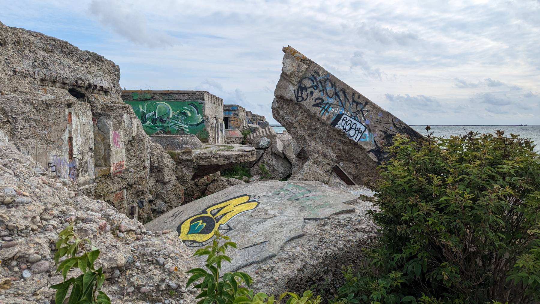 Wir kommen nach Liepaja, ein Ort der zu sowjetischer Besatzungs-Zeit komplett abgeriegelt war. Wir lesen, dass der Süden schöner als der Norden sein soll. Ja, das ist er, hässlicher als der Norden geht nicht. Bereits der Süden ist hässlich, viel alte Bebauung und unrenoviert. Der Norden ist einfach nur beklemmend. Unrenovierte, nein heruntergekommene, 6-stöckige langgezogene Wohnblöcke aus russischer Zeit, die auch noch bewohnt sind und viele Ruinen. Kein Ort, der zum Verweilen einlädt. Wir gucken uns aber das „Nord-Fort“ an. Ruinen der russischen Befestigungsanlage, die heute teilweise ins Meer ragen. Eine erschütternde Anlage oder besser Betonwüste.