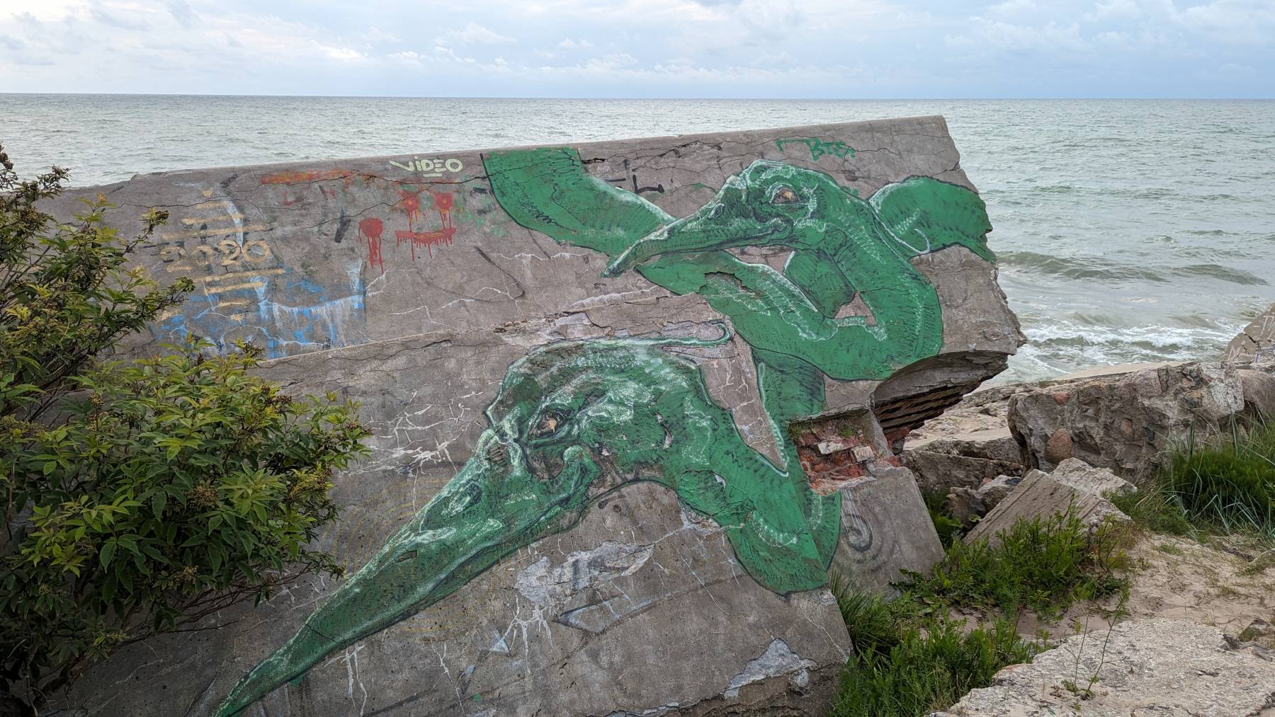 Wir kommen nach Liepaja, ein Ort der zu sowjetischer Besatzungs-Zeit komplett abgeriegelt war. Wir lesen, dass der Süden schöner als der Norden sein soll. Ja, das ist er, hässlicher als der Norden geht nicht. Bereits der Süden ist hässlich, viel alte Bebauung und unrenoviert. Der Norden ist einfach nur beklemmend. Unrenovierte, nein heruntergekommene, 6-stöckige langgezogene Wohnblöcke aus russischer Zeit, die auch noch bewohnt sind und viele Ruinen. Kein Ort, der zum Verweilen einlädt. Wir gucken uns aber das „Nord-Fort“ an. Ruinen der russischen Befestigungsanlage, die heute teilweise ins Meer ragen. Eine erschütternde Anlage oder besser Betonwüste.