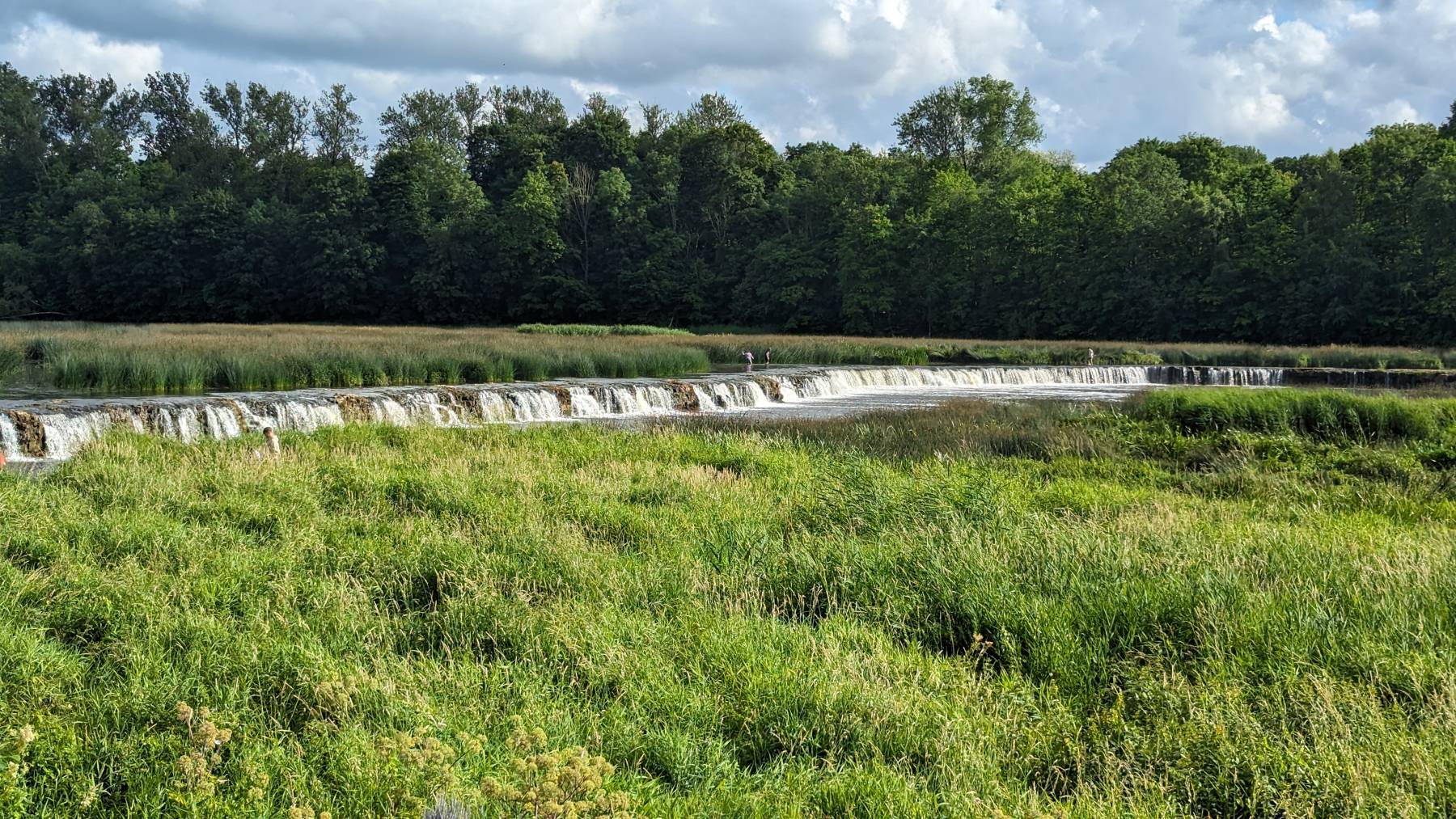 Der breiteste Wasserfall Europas, 246m breit aber nur 2 m hoch, wollen wir uns im Landesinneren anschauen. Die dort liegende Kleinstadt Kuldiga soll sehenswert sein. Sie ist ganz nett und insbesondere die Parks sind schön angelegt und gepflegt. Wir haben uns die Fotos von unserem Besuch 2003 angesehen, die Haupt-Straßen sind neu mit Kopfsteinpflaster angelegt und ein paar Häuser sind mal gestrichen worden. Viele Häuser sind aber auch in gleich schlechtem Zustand, jetzt halt noch 20 Jahre älter. Nach unserer Ansicht spricht das dafür, dass mit öffentlichen Geldern bzw. Zuschüssen der EU einiges getan worden ist, aber vieles in privaten Besitz mangels Masse, halt weiter unrenoviert bleibt.