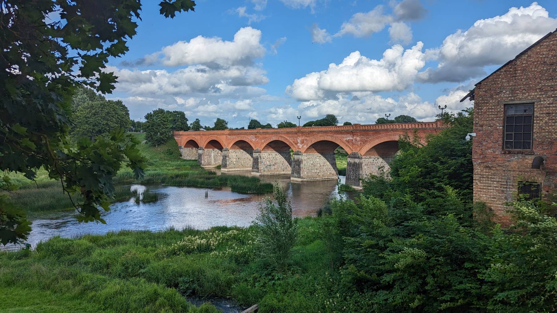 Der breiteste Wasserfall Europas, 246m breit aber nur 2 m hoch, wollen wir uns im Landesinneren anschauen. Die dort liegende Kleinstadt Kuldiga soll sehenswert sein. Sie ist ganz nett und insbesondere die Parks sind schön angelegt und gepflegt. Wir haben uns die Fotos von unserem Besuch 2003 angesehen, die Haupt-Straßen sind neu mit Kopfsteinpflaster angelegt und ein paar Häuser sind mal gestrichen worden. Viele Häuser sind aber auch in gleich schlechtem Zustand, jetzt halt noch 20 Jahre älter. Nach unserer Ansicht spricht das dafür, dass mit öffentlichen Geldern bzw. Zuschüssen der EU einiges getan worden ist, aber vieles in privaten Besitz mangels Masse, halt weiter unrenoviert bleibt.