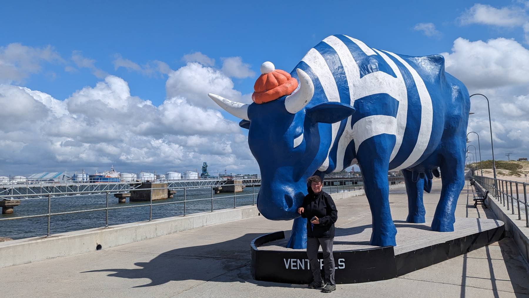 Es geht wieder an die See. Ventspils mit 33.000 Einwohnern, Lettlands sechstgrößte Stadt mit Erdölhafen ist halt eine Industriestadt. Aber auch hier wird sehr viel gebaut, gemacht und getan, sodass Teile wirklich ganz nett sind. Für uns ist aber das Besondere die „Cow-Parade“. Von Künstlern gestaltete Kühe stehen über die ganze Stadt verteilt. Sie werden zeitweise versteigert, bleiben aber meist dort stehen, und die Erlöse gehen an soziale Einrichtungen. Zusätzlich macht es den Ort ein wenig interessanter.