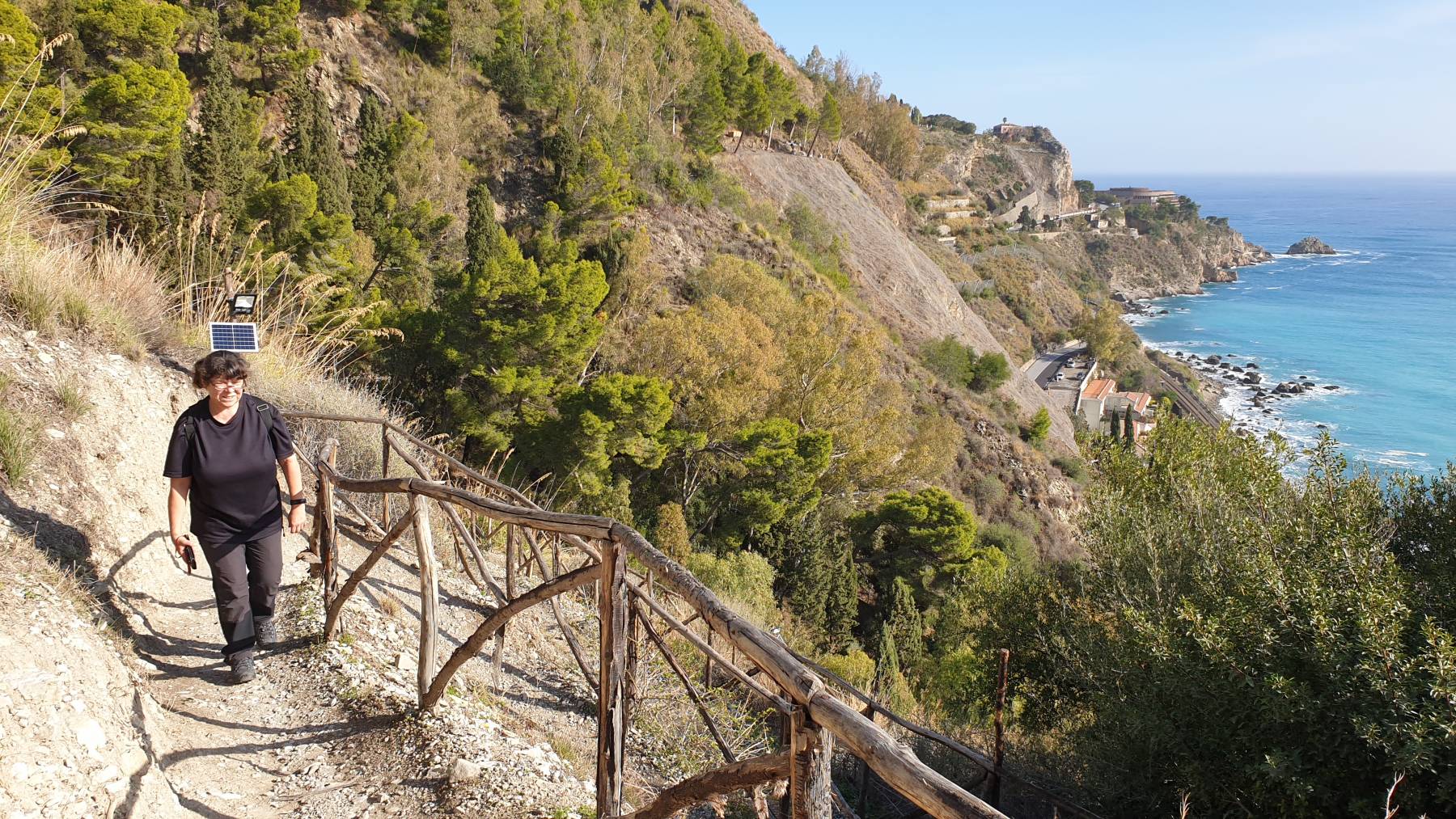 Den Parkplatz, den wir uns in Taormina rausgesucht haben – der einzig mögliche für Wohnmobile – neben einem verlassenen Hotel, ist hässlich und gefährlich umrahmt von Steilhängen. Von hier aus sind es nur 1 km zum Theater, allerdings mit 350m Höhenunterschied.