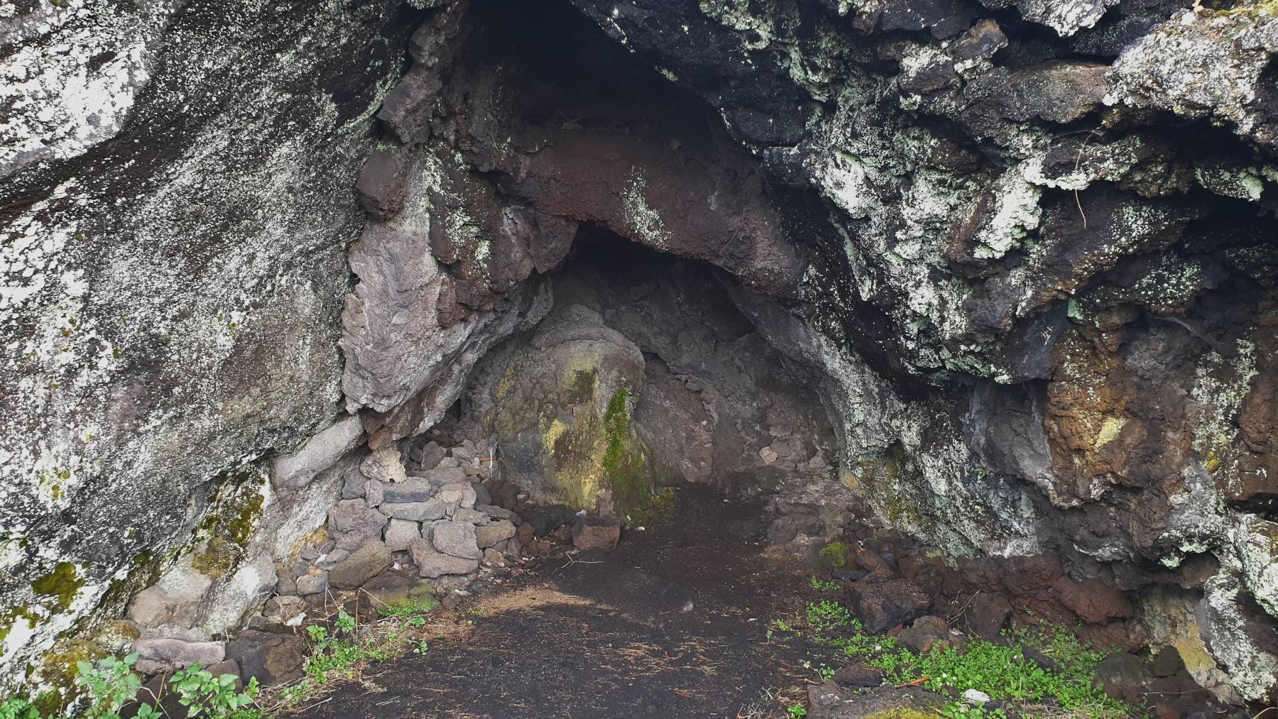 Wir haben an sich keine Lust zu wandern. Die Sonne kommt immer wieder durch und auf der App Komoot finden wir eine Wanderung zum Krater der 2002 ausgebrochen ist. Die wird in „schwer“ kategorisiert, so gehen wir erst einmal die paar Hundert Meter zum durch den Vulkanausbruch 2002 zerstörten Hotel. Wir gehen dann immer weiter. Es ziehen Wolken auf und erwägen immer wieder umzukehren. Es geht bis auf über 2000m hoch und wir sind begeistert von der abwechslungsreisen Wanderung und dem Rundgang auf dem schmalen Kraterrand.