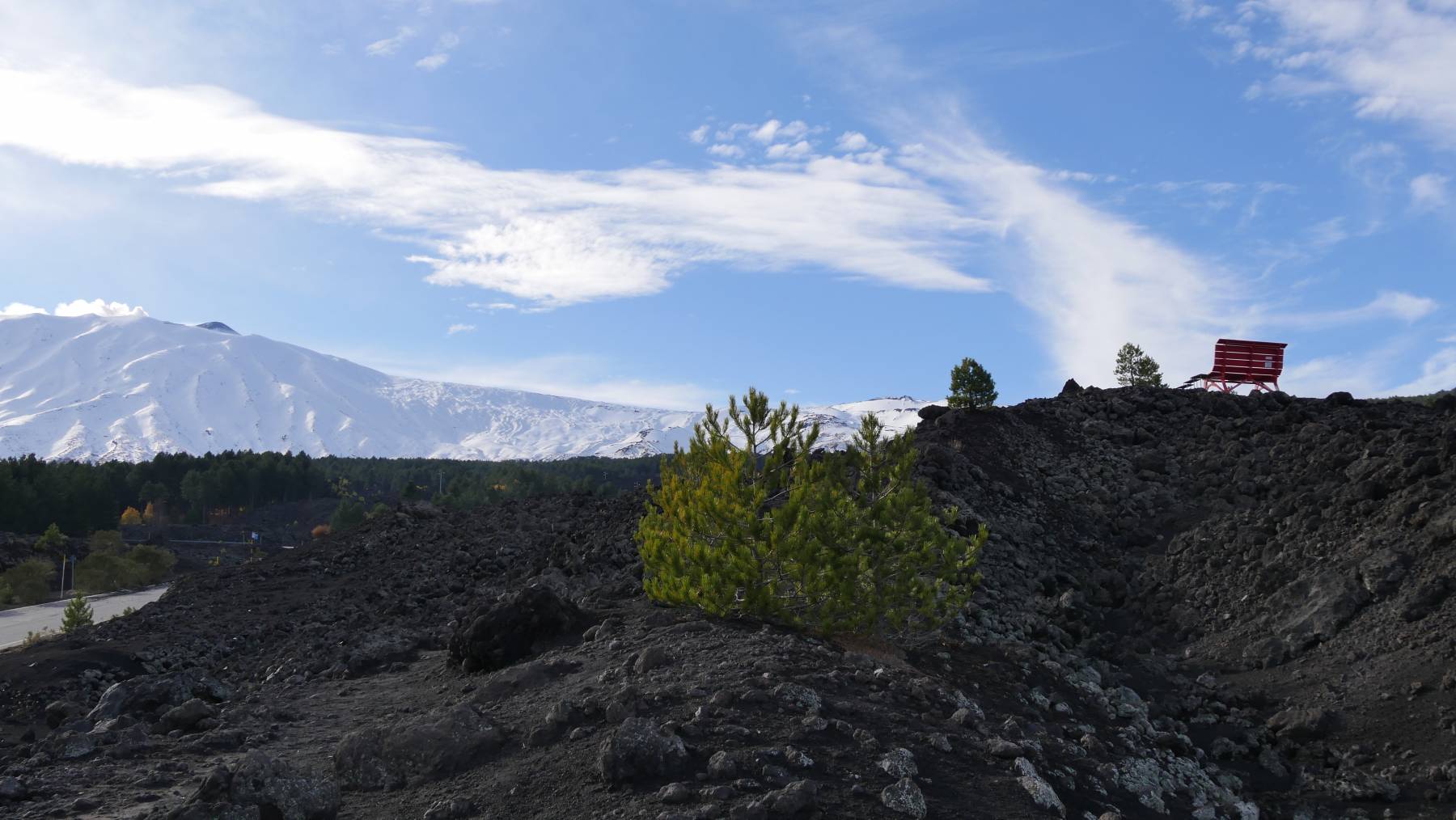 Wir fahren die 40 km um den Ätna, unterwegs sind alle Parkplätze belegt, auf den Parkplatz im Süden auf 1.800 m Höhe, von wo aus auch die Seilbahn auf 2.500 m hoch geht. Wir machen einen Spaziergang um die beiden seit 1892 erloschenen Vulkane Silvestri. Die Nacht bringt nicht nur die Überraschung, dass wir als einziges Wohnmobil da oben bleiben. Es kommen Feuerwehrfahrzeuge, dann Krankenwagen und verschiedenste Einsatzfahrzeuge, alle mit Blaulicht. Sie fahren hin und her, bauen später ein Flutlicht auf und lassen die ganze Nacht – zu Anettes Leidwesen – den Generator laufen. Um 7 Uhr wachen wir auf, als ein Hubschrauber über unser Bett fliegt und 100 Meter weiter landet. Nach anfänglicher Unsicherheit, gehen wir jetzt von einer Übung aus, ausgebrochen ist der Vulkan offensichtlich nicht 😁.