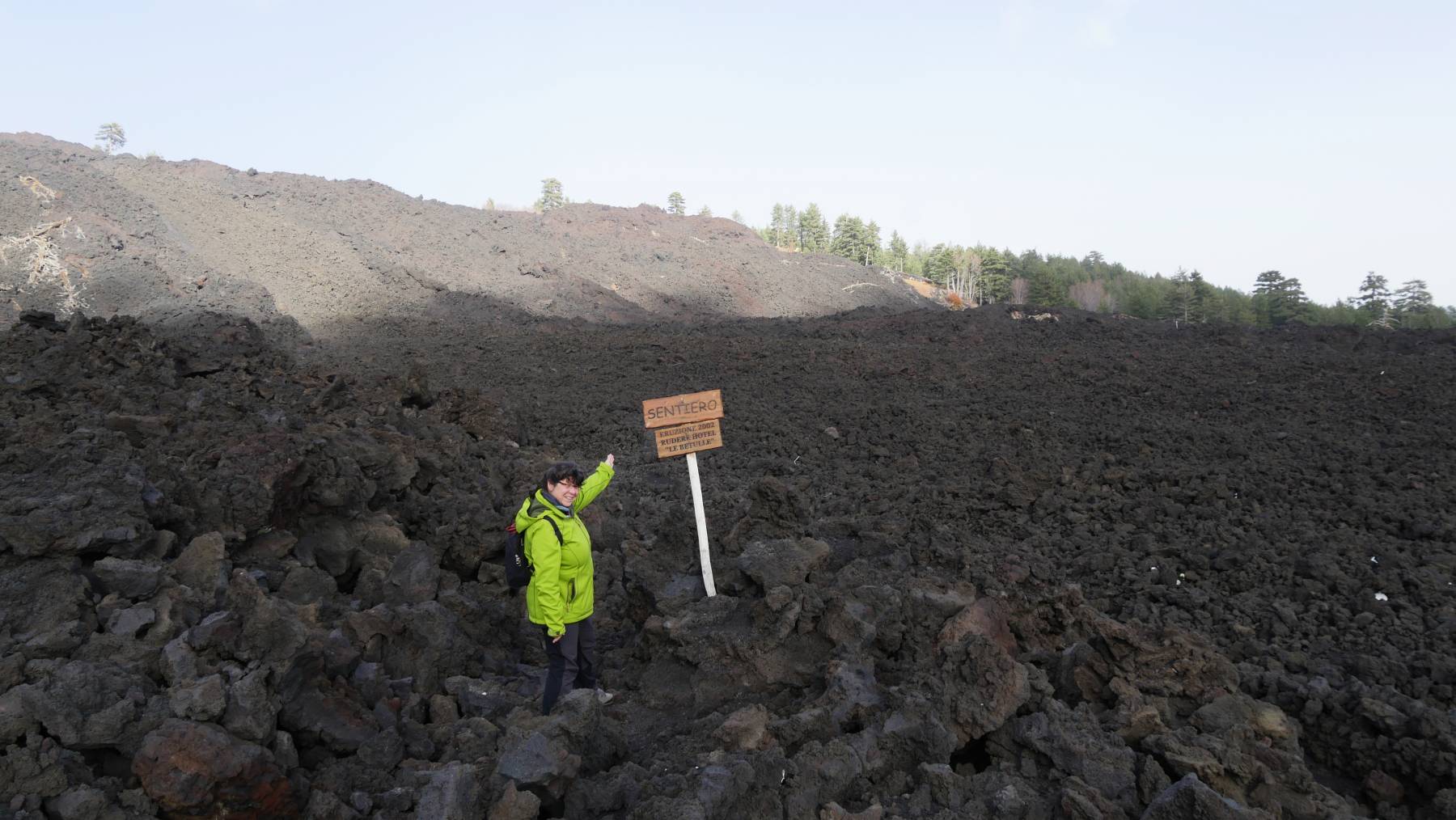 Eine 360Grad Ansicht vom erloschenen Krater Silvestri Superiore über Ätna und Lavaströme