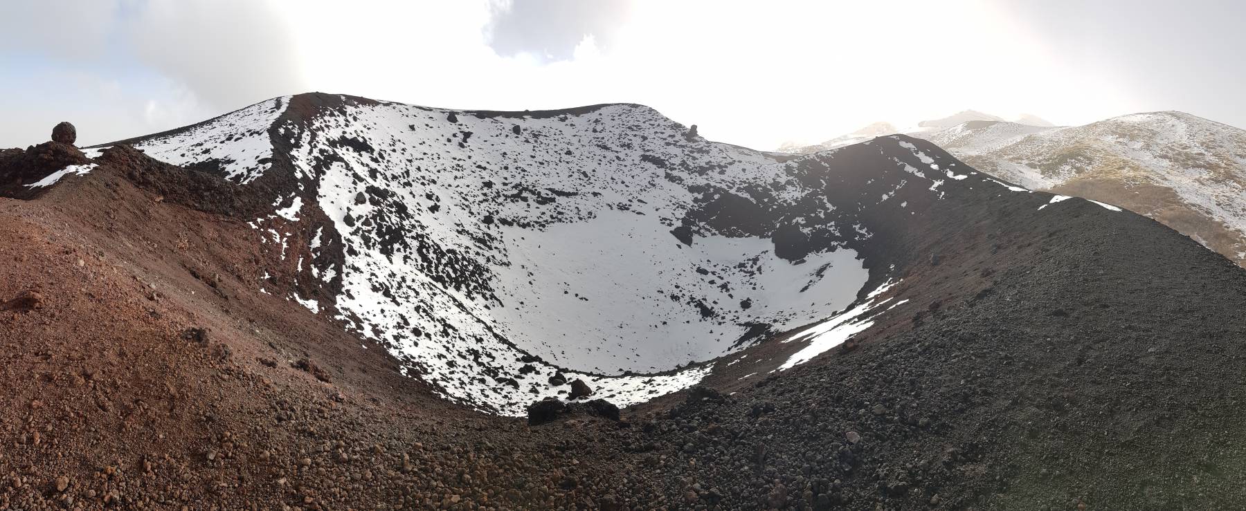 Eine 360Grad Ansicht vom erloschenen Krater Silvestri Superiore über Ätna und Lavaströme