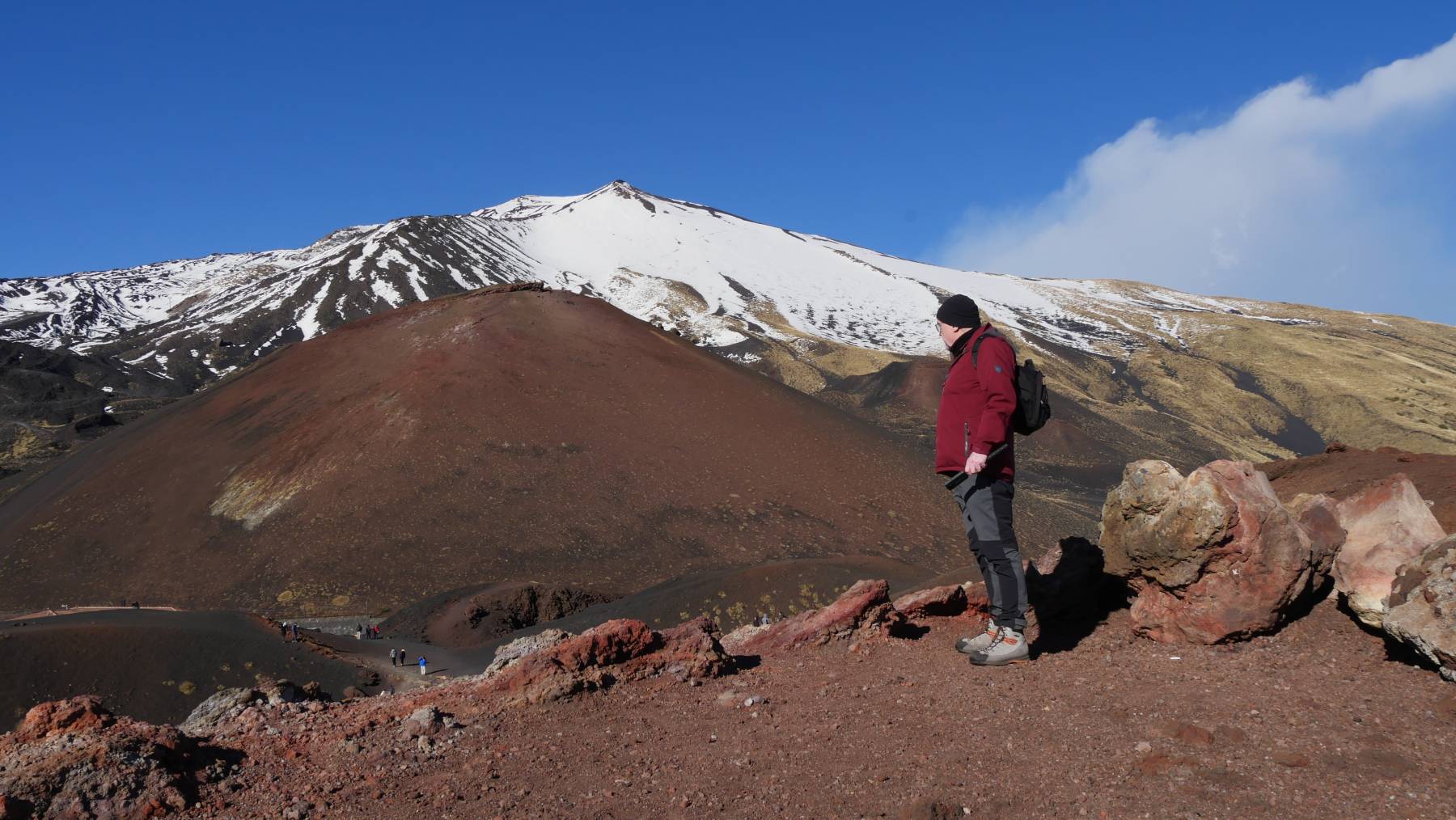 Wir fahren die 40 km um den Ätna, unterwegs sind alle Parkplätze belegt, auf den Parkplatz im Süden auf 1.800 m Höhe, von wo aus auch die Seilbahn auf 2.500 m hoch geht. Wir machen einen Spaziergang um die beiden seit 1892 erloschenen Vulkane Silvestri. Die Nacht bringt nicht nur die Überraschung, dass wir als einziges Wohnmobil da oben bleiben. Es kommen Feuerwehrfahrzeuge, dann Krankenwagen und verschiedenste Einsatzfahrzeuge, alle mit Blaulicht. Sie fahren hin und her, bauen später ein Flutlicht auf und lassen die ganze Nacht – zu Anettes Leidwesen – den Generator laufen. Um 7 Uhr wachen wir auf, als ein Hubschrauber über unser Bett fliegt und 100 Meter weiter landet. Nach anfänglicher Unsicherheit, gehen wir jetzt von einer Übung aus, ausgebrochen ist der Vulkan offensichtlich nicht 😁.