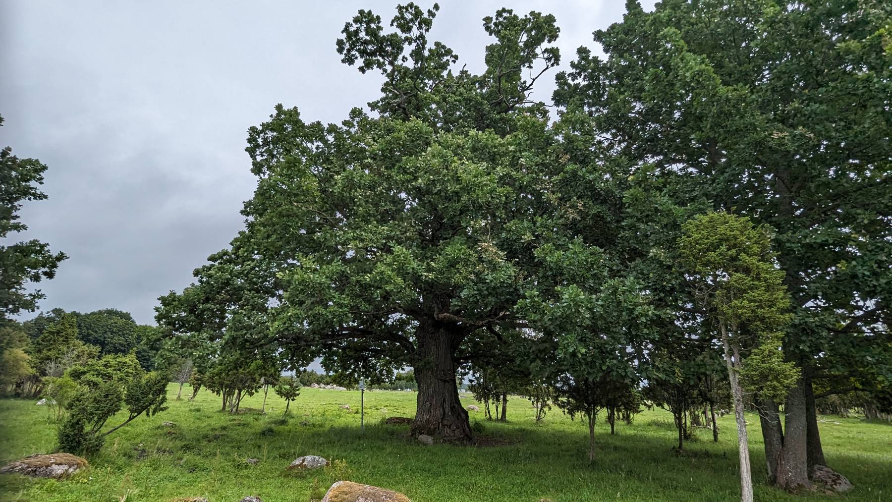 Nächster Stopp bei einem kleinen Parkplatz bei drei 360 Jahre alten Eichen