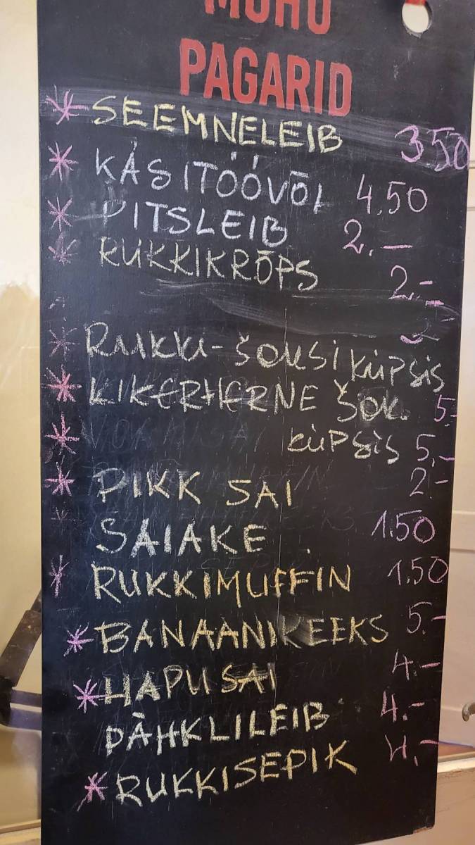 Auf der besagten kleinen Insel Muhu im Ort Livia gibt es das dort sehr bekannte „Muhu Leib“, ein Brot das sehr lecker sein soll. Wir haben gehört, dass man da schon mal in einer Schlange stehen soll. Es regnet heute, also geschickt wie wir sind, machen wir uns mit Regenschirm auf den Weg. Das haben sich dann doch auch andere überlegt, vor uns stehen 10 Leute in einem engen Gang in einem völlig unscheinbaren Haus. Wir stehen geduldig an und ich sehe über die Schulter, vor uns kauft die beiden letzten Original-MuhuBrote. Ins ca. 18 Minuten sind die nächsten fertig. Hinter uns stehen jetzt über 20 Leute, wir entscheiden uns für eine original Variante mit Nüssen, ein helles Brot und zwei Muffins. Das bekannte dunkle Brot ist tatsächlich sehr lecker und die Muffins auch, das Helle hat dann doch zuviel Kümmel.