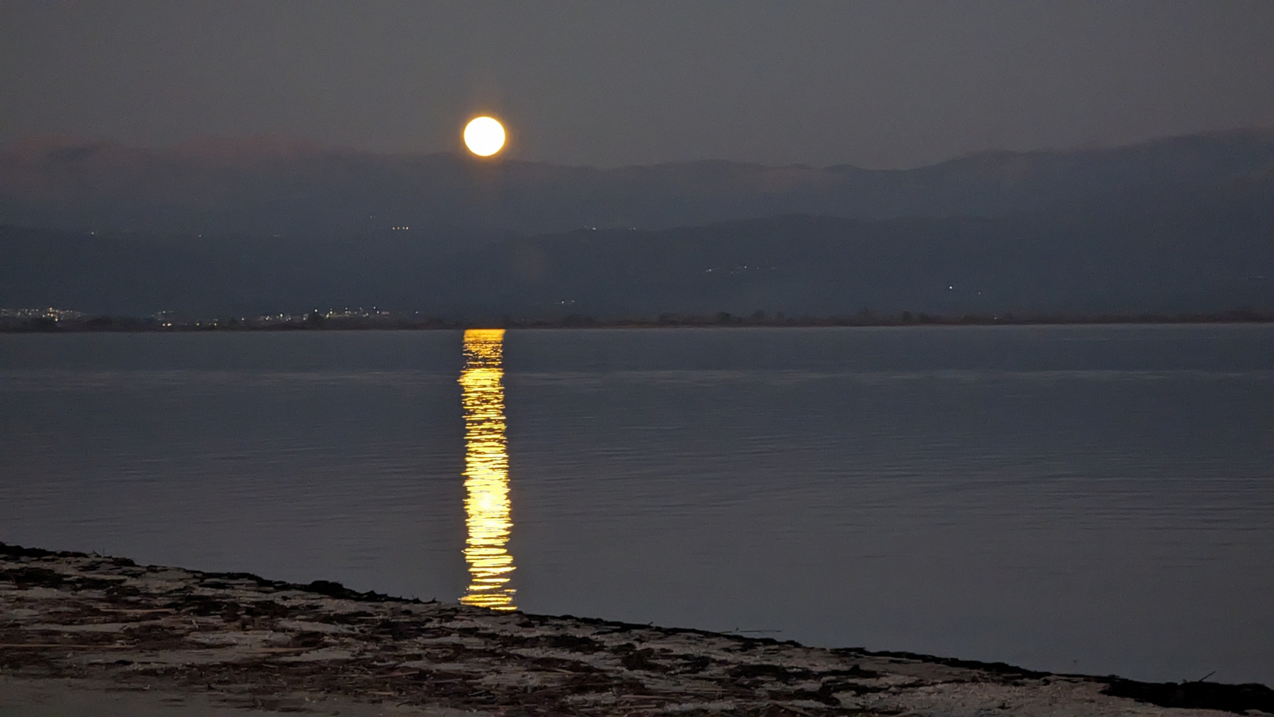 Nach einer ruhigen Übernachtung oberhalb des Sees von Ioannina wollen wir zum Ambrakischen Golf. Vielleicht sehen wir noch ein paar Flamingos. Wir filmen – verbotenerweise – unsere Fahrt über den Damm durch den Golf. Am Ende ist ein ausgewiesener Parkplatz, auf dem sogar Camping erlaubt ist. Wir bleiben, allerdings nur bis 19 Uhr. Ein lauter Knall an unserem Heck schreckt uns auf. Anette reißt sofort das Fenster auf und ruft in die Dunkelheit „What´s your problem?“. Wir sehen hinten ein paar Jugendliche Schatten weglaufen. Umgezogen gehen wir ein paar Hundert Meter mit Taschenlampe Richtung Ortschaft und treffen niemanden an. Am Fahrzeug zurück suchen wir mit Taschenlampe nach Schäden oder nach Wurfgeschossen. Wir finden nichts. Was tun? Bleiben und immer wieder achtsam sein? Oder einfach fahren und weiter abseits des Ortes einen anderen Platz anfahren. Zu letzterem entscheiden wir uns. Am nächsten Morgen sehen wir dann einen Handabdruck auf der Heckscheibe. Es ist also jemand hochgesprungen und hat gegen die Scheibe geschlagen. „Modernes Klingelmäuschen“ oder einfach ein Vertreiben wollen? Wir werden es nicht erfahren, lesen aber in den Park4night Bewertungen, dass viele Camper an der Küste in dieser Region dieses Jahr mit Früchten oder ähnlichen beworfen worden sind.