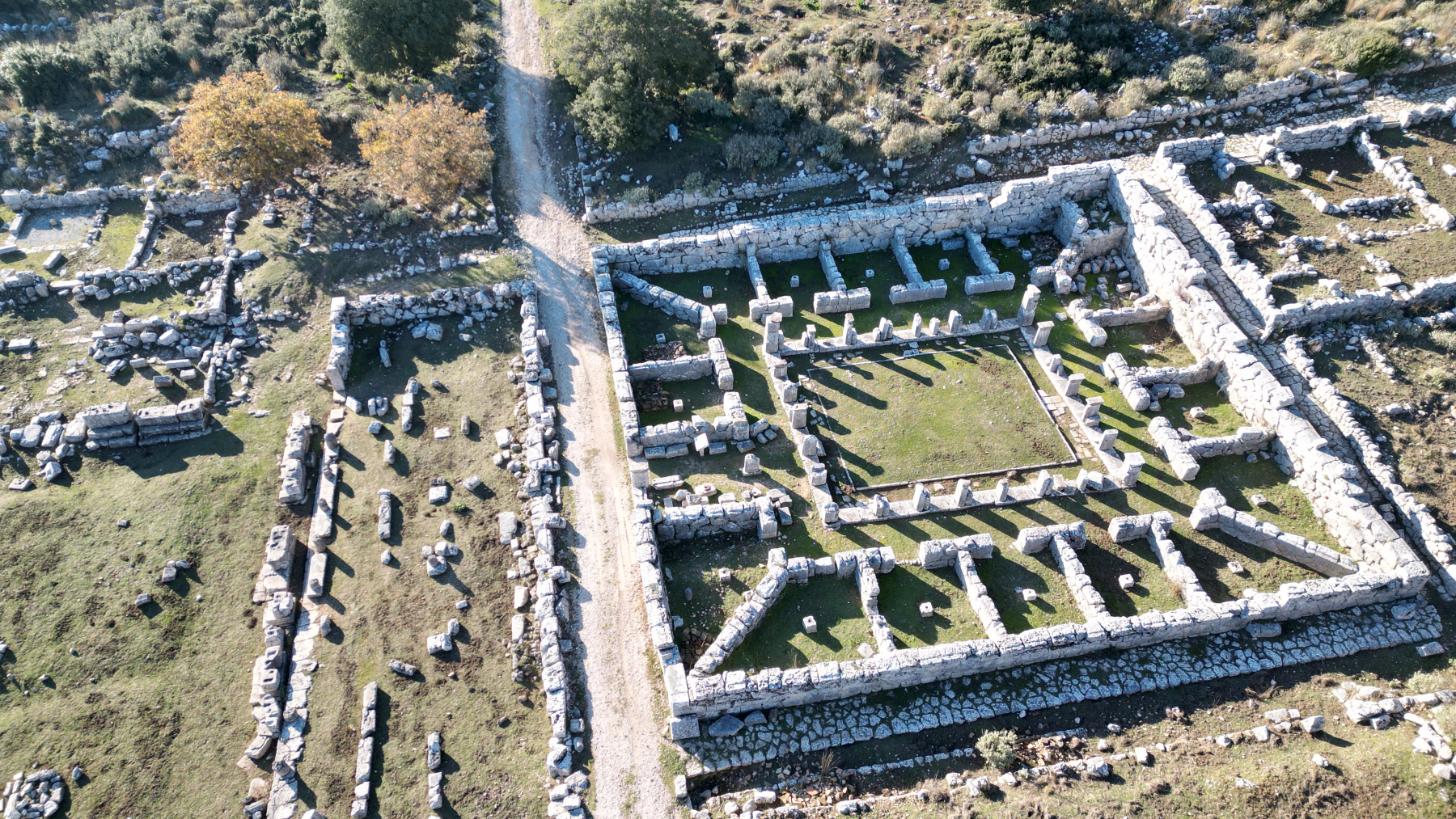 Nach einer ruhigen Nacht am Meer sehen wir, dass es in der Nähe noch eine uns unbekannte antike römische Stätte liegt – Nikopolis. 31 v.Chr. von Kaiser Augustus gegründet. Auf dem sehr weitläufigen Gelände, welches nur mit dem Fahrzeug zu besuchen ist, verteilen sich u.a. zwei Theater, eine lange Stadtmauer und auch Mosaike. Wir bezahlen € 4,–/p.P. Eintritt und sind insgesamt ganz angetan, stehen aber plötzlich vor dem kleinen renovierten Odeon (Theater), welches verschlossen ist. Das geht ja gar nicht 🙈. Zurück zum Auto und zumindest mal mit Drohne gucken. Nicht nur, dass es – wie gesagt – speziell über Ausgrabungen – strengstens verboten ist. Wir haben auch gelesen, dass in Griechenland Greifvögel auf Drohnen abgerichtet werden. Was schließen wir daraus: Bilder und Videos der Drohne täglich sichern, Rest macht dann die Versicherung…