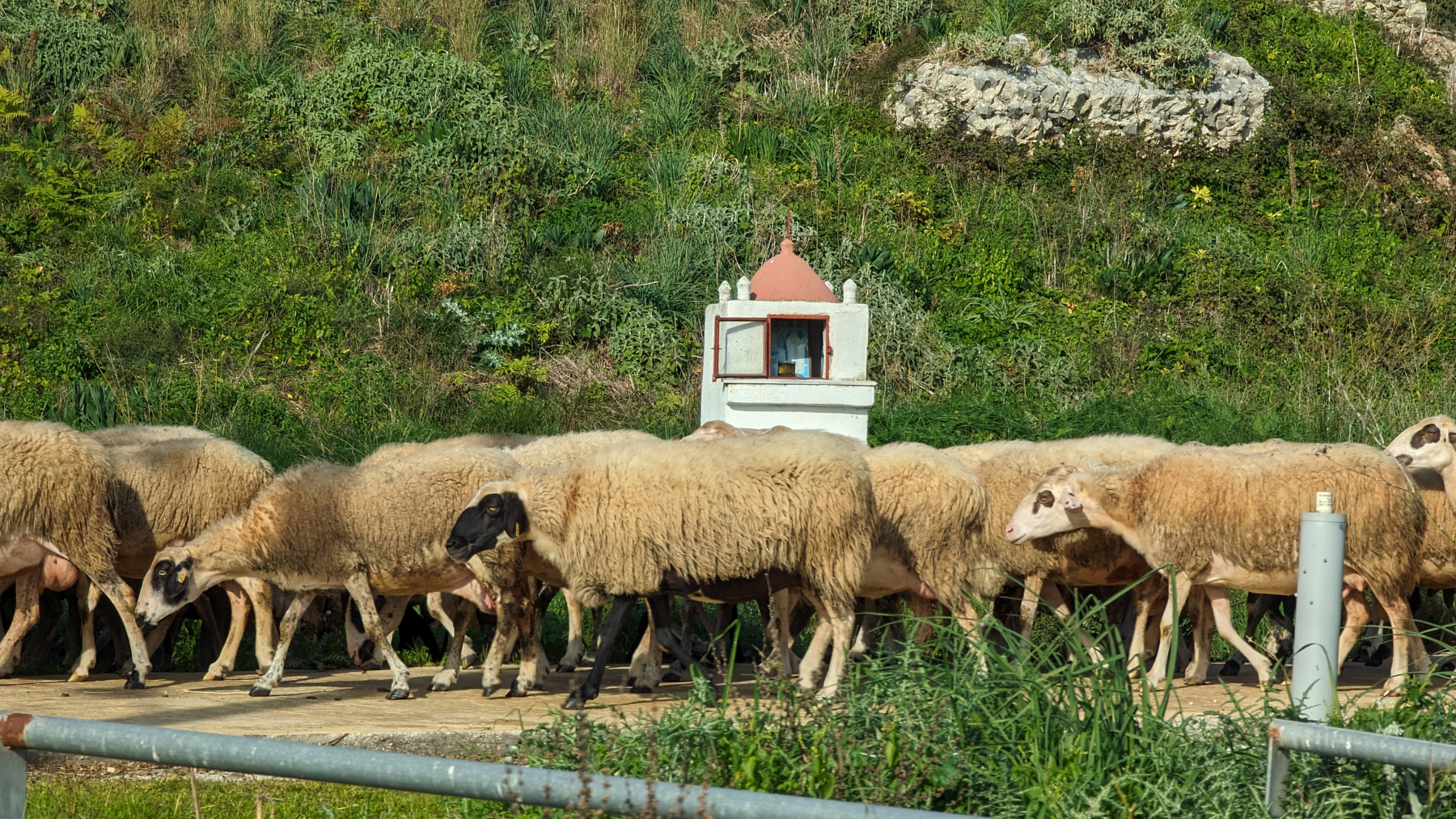 Nach einer ruhigen Übernachtung oberhalb des Sees von Ioannina wollen wir zum Ambrakischen Golf. Vielleicht sehen wir noch ein paar Flamingos. Wir filmen – verbotenerweise – unsere Fahrt über den Damm durch den Golf. Am Ende ist ein ausgewiesener Parkplatz, auf dem sogar Camping erlaubt ist. Wir bleiben, allerdings nur bis 19 Uhr. Ein lauter Knall an unserem Heck schreckt uns auf. Anette reißt sofort das Fenster auf und ruft in die Dunkelheit „What´s your problem?“. Wir sehen hinten ein paar Jugendliche Schatten weglaufen. Umgezogen gehen wir ein paar Hundert Meter mit Taschenlampe Richtung Ortschaft und treffen niemanden an. Am Fahrzeug zurück suchen wir mit Taschenlampe nach Schäden oder nach Wurfgeschossen. Wir finden nichts. Was tun? Bleiben und immer wieder achtsam sein? Oder einfach fahren und weiter abseits des Ortes einen anderen Platz anfahren. Zu letzterem entscheiden wir uns. Am nächsten Morgen sehen wir dann einen Handabdruck auf der Heckscheibe. Es ist also jemand hochgesprungen und hat gegen die Scheibe geschlagen. „Modernes Klingelmäuschen“ oder einfach ein Vertreiben wollen? Wir werden es nicht erfahren, lesen aber in den Park4night Bewertungen, dass viele Camper an der Küste in dieser Region dieses Jahr mit Früchten oder ähnlichen beworfen worden sind.