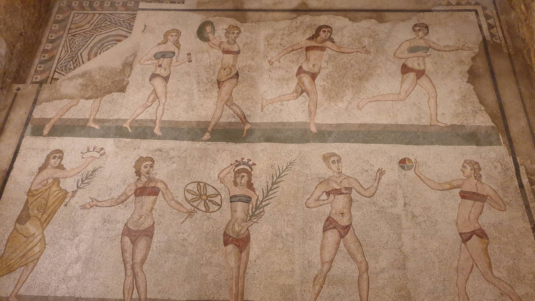 Ein kulturelles Highlight auf Sizilien ist die Villa Romana del Casale. Es sind Überreste eines Anwesens aus dem 4. Jahrhundert n. Chr. mit vielen römischen Mosaiken und Wandmalereien. Bekannt dort ist das Mosaik mit den Frauen in Bikinis.