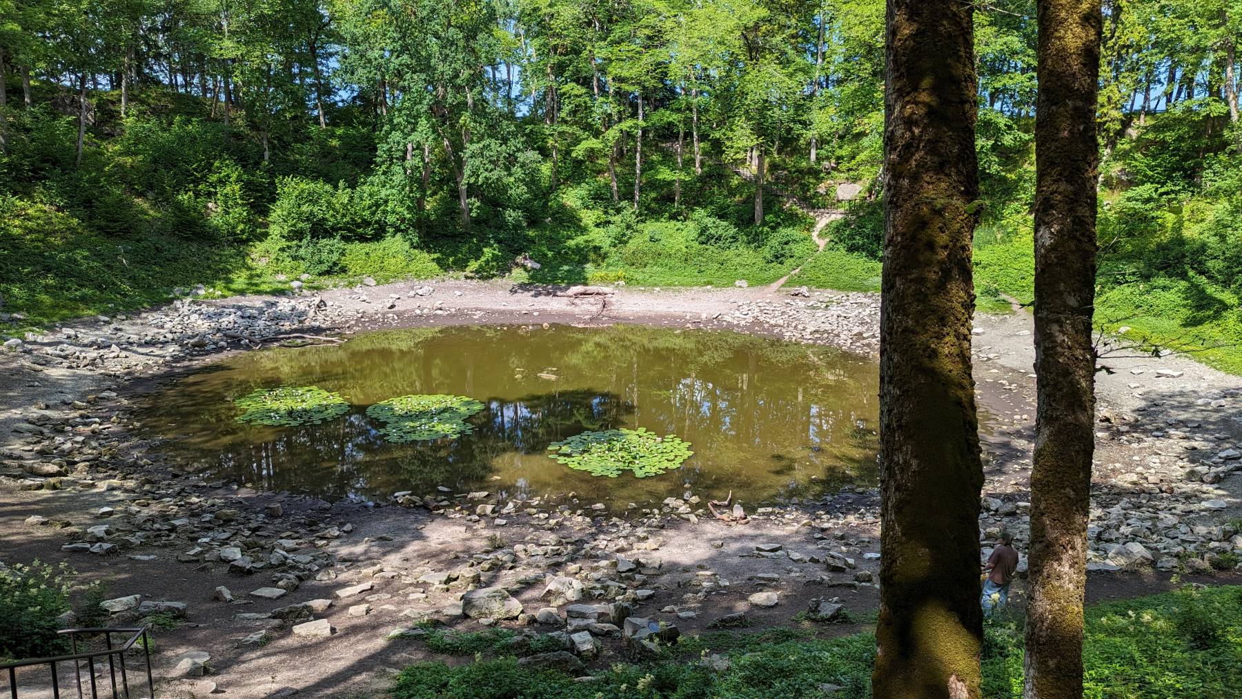 Auf Saaremaa gibt es drei Sehenswürdigkeiten, die auch von Kreuzfahrtpassagieren angefahren werden. Den Meteoritenkrater, den Mühlenberg mit historischen Bockwindmühlen und Panga Pank, mit 21 Meter, die höchsten Klippen Estlands. An den drei Orten ist es auch tatsächlich am vollsten, hauptsächlich Esten oder Finnen. Ansonsten fahren wir manchmal auch auf Straßen, wo uns eine Stunde kein Fahrzeug begegnet und kommen an sehr viele schöne Stellen vorbei.