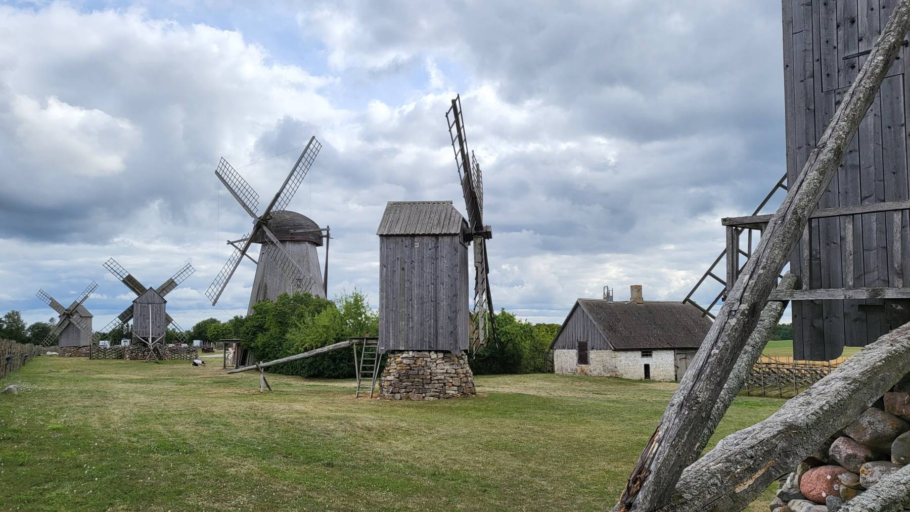 Auf Saaremaa gibt es drei Sehenswürdigkeiten, die auch von Kreuzfahrtpassagieren angefahren werden. Den Meteoritenkrater, den Mühlenberg mit historischen Bockwindmühlen und Panga Pank, mit 21 Meter, die höchsten Klippen Estlands. An den drei Orten ist es auch tatsächlich am vollsten, hauptsächlich Esten oder Finnen. Ansonsten fahren wir manchmal auch auf Straßen, wo uns eine Stunde kein Fahrzeug begegnet und kommen an sehr viele schöne Stellen vorbei.