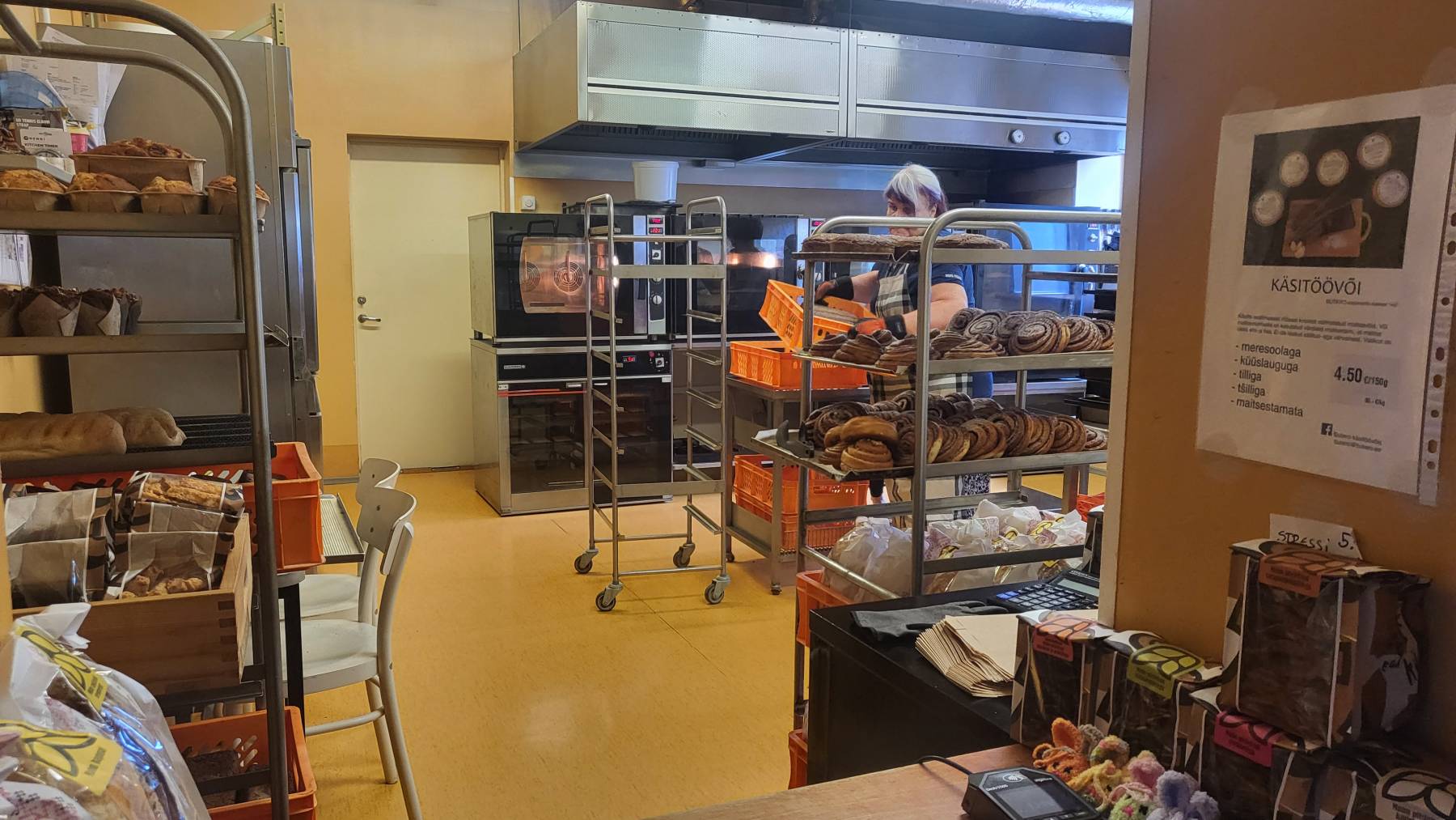 Und dann halten wir auf dem Rückweg zum Festland wieder beim „Muhu-Brot“, wir wollen noch das Original haben. Wir haben Glück. Vor uns steht nur eine Einheimische, die die fünf Minuten auf das Brot aus dem Backofen wartet. Sie spricht sogar Deutsch und am Ende kaufen wir den halben Laden leer…