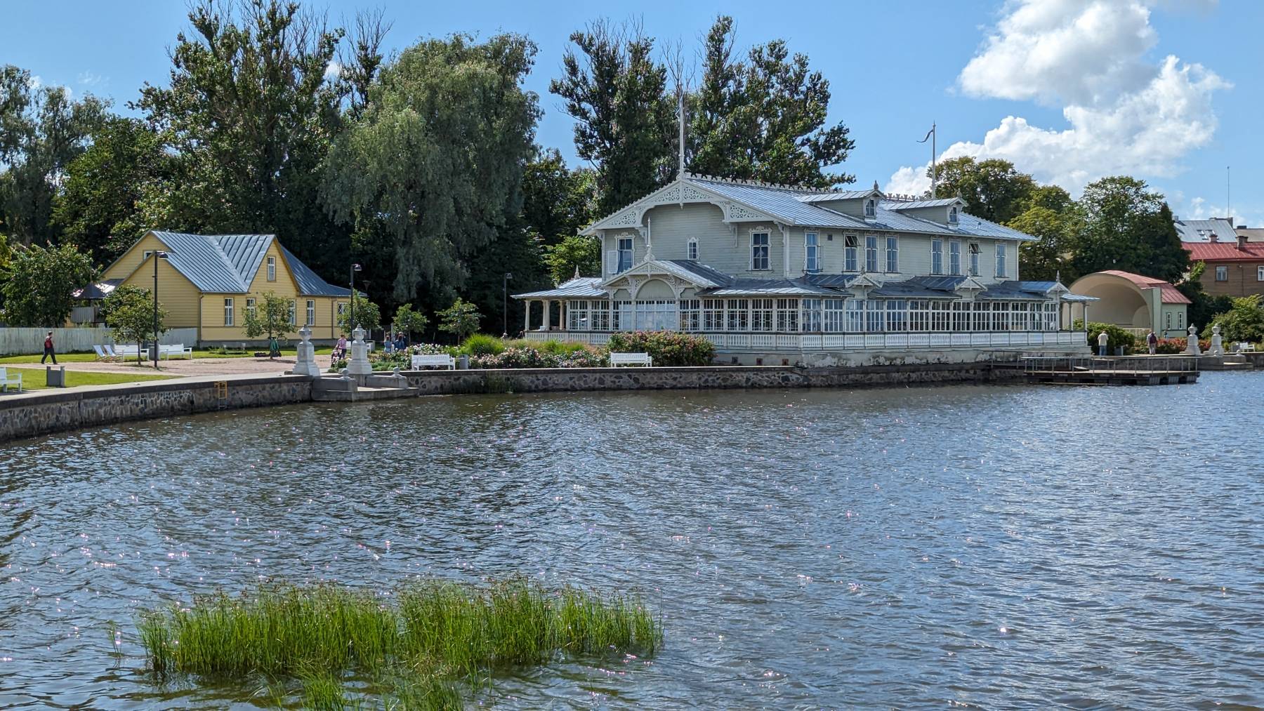 In Haapsalu, einem Ferienort mit Kureinrichtungen und Badestrand, kommt es für uns beinahe zum Fiasko. Die Stadt mit ihren 13.000 Einwohnern, veranstaltet kommendes Wochenende ein großes Festival und über die Hauptstraße sind schon Lichterketten mit Glühbirnen gespannt. Vor uns fährt ein Lkw mit Dixieklos, ich denke das geht dann auch für mich, bis Anette ruft – „Stopp“. Ein Einheimischer guckt sich das an und winkt uns optimistisch weiter. Zu Spät. Die Leitung hängt auf unserem Dach fest. Anette klettert durch das Fenster aufs Dach und hebt die Leitung über die Antenne, damit ich zumindest langsam zurücksetzen kann. Glück gehabt.