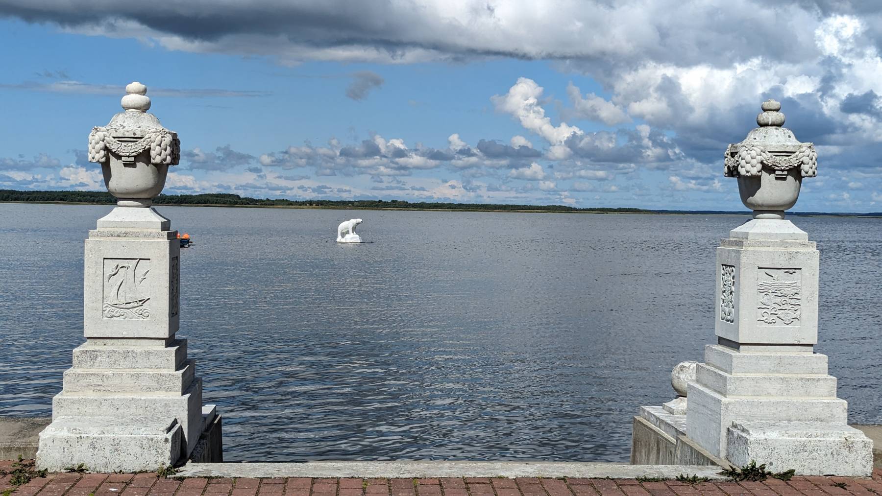 Auf Saaremaa gibt es drei Sehenswürdigkeiten, die auch von Kreuzfahrtpassagieren angefahren werden. Den Meteoritenkrater, den Mühlenberg mit historischen Bockwindmühlen und Panga Pank, mit 21 Meter, die höchsten Klippen Estlands. An den drei Orten ist es auch tatsächlich am vollsten, hauptsächlich Esten oder Finnen. Ansonsten fahren wir manchmal auch auf Straßen, wo uns eine Stunde kein Fahrzeug begegnet und kommen an sehr viele schöne Stellen vorbei.