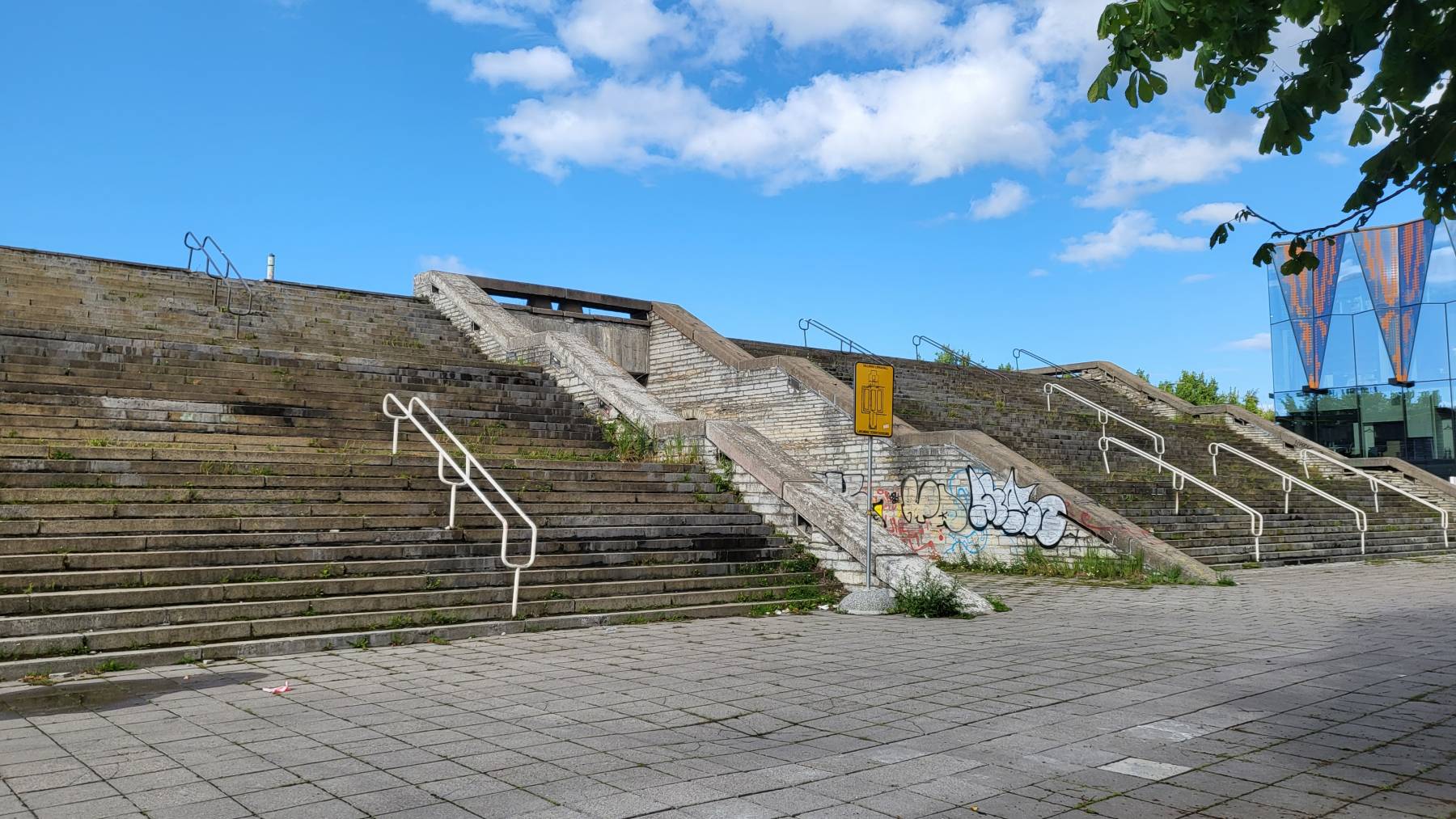 In Haapsalu, einem Ferienort mit Kureinrichtungen und Badestrand, kommt es für uns beinahe zum Fiasko. Die Stadt mit ihren 13.000 Einwohnern, veranstaltet kommendes Wochenende ein großes Festival und über die Hauptstraße sind schon Lichterketten mit Glühbirnen gespannt. Vor uns fährt ein Lkw mit Dixieklos, ich denke das geht dann auch für mich, bis Anette ruft – „Stopp“. Ein Einheimischer guckt sich das an und winkt uns optimistisch weiter. Zu Spät. Die Leitung hängt auf unserem Dach fest. Anette klettert durch das Fenster aufs Dach und hebt die Leitung über die Antenne, damit ich zumindest langsam zurücksetzen kann. Glück gehabt.