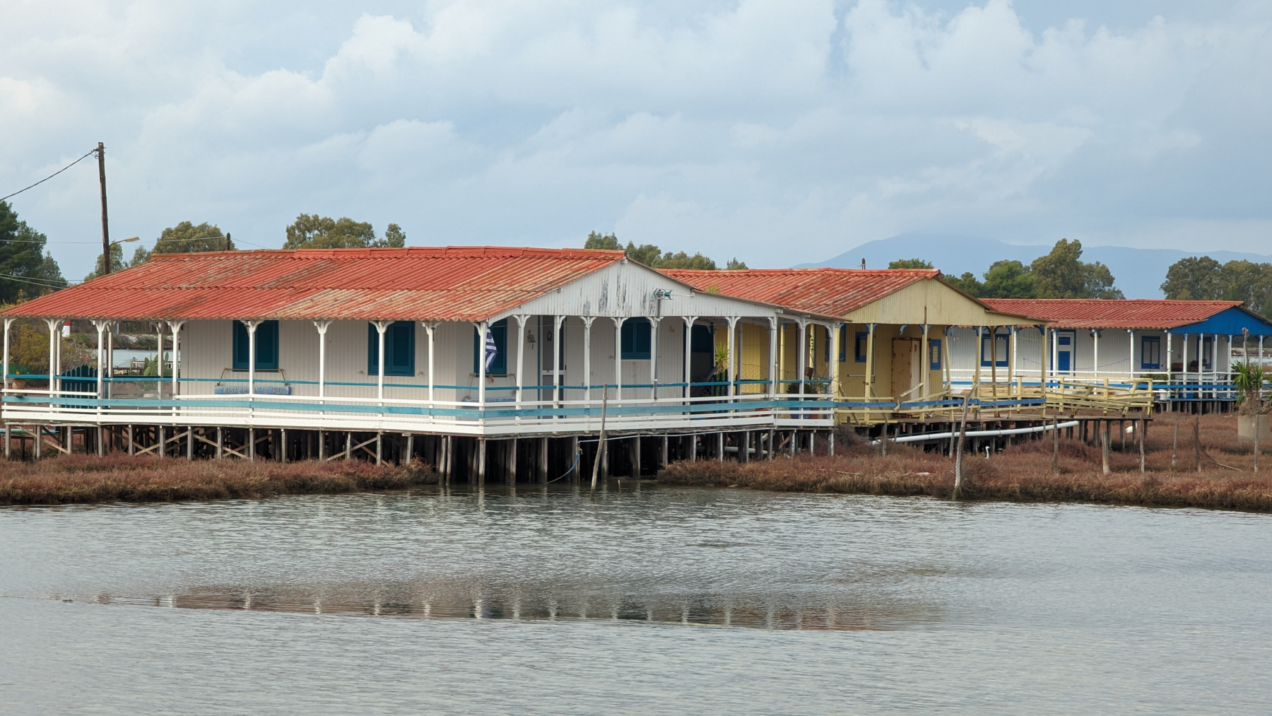 So umrunden wir die Insel weiter, machen kurze Stopps in kleinen schönen Örtchen, in denen aber alles geschlossen ist, und bleiben wieder auf einem Damm im Nordosten der Insel. Hier treffen wir mal wieder Reisende, mit einem Weltreisefahrzeug auf LKW-Basis aus Österreich. Drei Jahre haben sie vor Richtung Asien durch Iran und Kasachstan zu tingeln. Jünger als wir. Woher nehmen die alle die Zeit und das Geld??? Da sie auch auf der Peleponnes überwintern wollen, werden wir sie mal fragen…