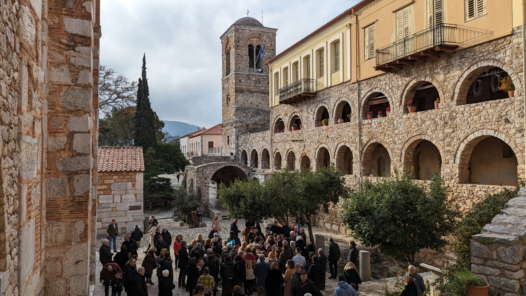 Wir befinden uns auf den Serpentinen Richtung Delphi. Plötzlich ein lauter Knall. Schnell rechts raus auf eine Aussichtsfläche. Rechts vorne ist der Reifen geplatzt. Unser dritter Platten insgesamt mit dem Fahrzeug, und das mit neuen Reifen. Der Unterschied ist dieses Mal aber offensichtlich anders. Der Reifen wurde an der Flanke angeschnitten, also Sabotage. Wir vermuten „Deutschlandhasser“, da wir als Camper immer abseits von Orten genächtigt haben und auch so keinerlei Konflikte hatten. Ärgerlich ist zudem, dass der Wagenheber dabei seinen Geist aufgibt, was sich durch auslaufendes Hydrauliköl bemerkbar macht. Glücklicherweise erst nach der Montage des Ersatzrades. Also muss ein neuer Originalheber von Mercedes her, da er in die Vorrichtung passen muss.