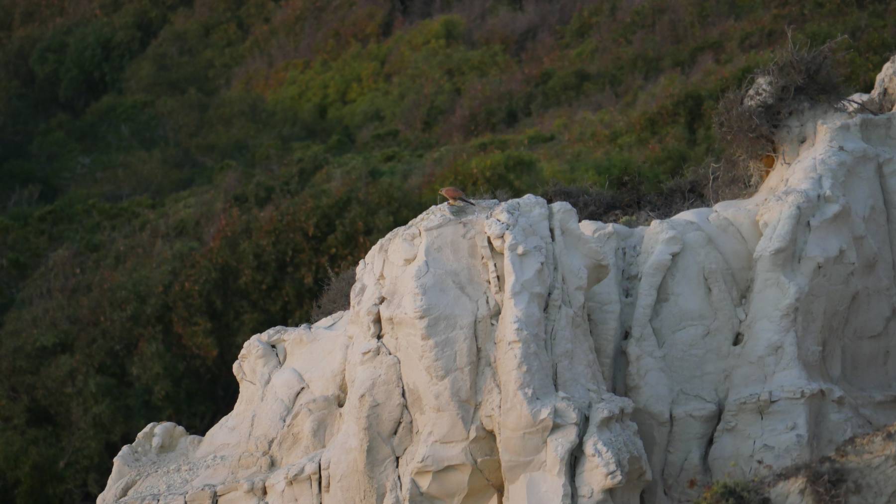 Montagmorgen soll es zuerst zum Naturschutzgebiet Torre Salsa mit weißen Felsen gehen. Wir fahren nur Nebenstraßen um einen Zugang zu finden, aber der Begriff schlechte Straße bekommt ein praktisches Gesicht. An die weit in die Straße ragenden Büsche haben wir uns bereits auf Hauptstraßen ein wenig gewöhnt, nur schade um unsere GFK-Außenhaut. Tiefe Risse im Asphalt und Schlaglöcher enden zunehmend in abgerutschter und teilweise nicht mehr vorhandener Straße. So finden wir die Hauptzufahrt zu dem wohl – kaum verwunderlich – verwaisten Informationszentrum nicht. An Stelle einer Wanderung begnügen wir uns mit einem Strandblick am Ende einer Sackgasse. Wir wollten hier nächtigen, es stehen aber bereits zwei deutsche Womos da – also voll.