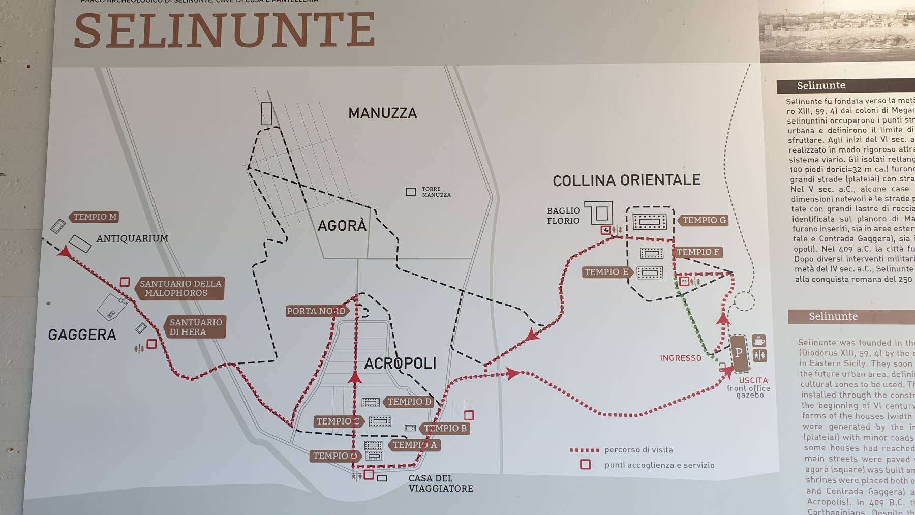 Selinunt, als eine der größten archäologischen Ausgrabungsstätten des Mittelmeerraumes, haben wir uns für eine richtige Besichtigung rausgesucht. Selinus war eine griechische Stadt aus dem 7. Jh. v. Ch.. Insgesamt 8 km bewegen wir uns durch das Gebiet, mit der Besonderheit, frei durch die Ruinen und teilweise restaurierten Tempel gehen zu können. Den Shuttleservice, für 6 Euro zusätzlich, lehnen wir freundlich ab. Fand der Ticketverkäufer nicht so gut. Neben dem Eintritt von € 8 (kürzlich erhöht), sollen wir noch € 3 für eine Karte ausgeben. Der Zustand der gesamten Anlage erinnert mich an meinen letzten Besuch – 1976. Immerhin nur wenig verwitterte Schilder, allerdings nur auf Italienisch und Englisch. Die vorher heruntergeladene App aller Ausgrabungsstätten Siziliens ist nur auf Englisch und völlig sinnfrei ohne Inhalte. Die QR-Codes auf den Schildern führen zu der Nachricht: „Das Ziel wurde stillgelegt“. In der modernen digitalen Welt soll man wohl lieber Bücher und Karten kaufen. Das erinnert mich doch ein wenig an Deutschland. Uns hat der Besuch insgesamt aber gefallen, da wir ihn als kostenpflichtige Wanderung mit kulturellem Hintergrund betrachten.