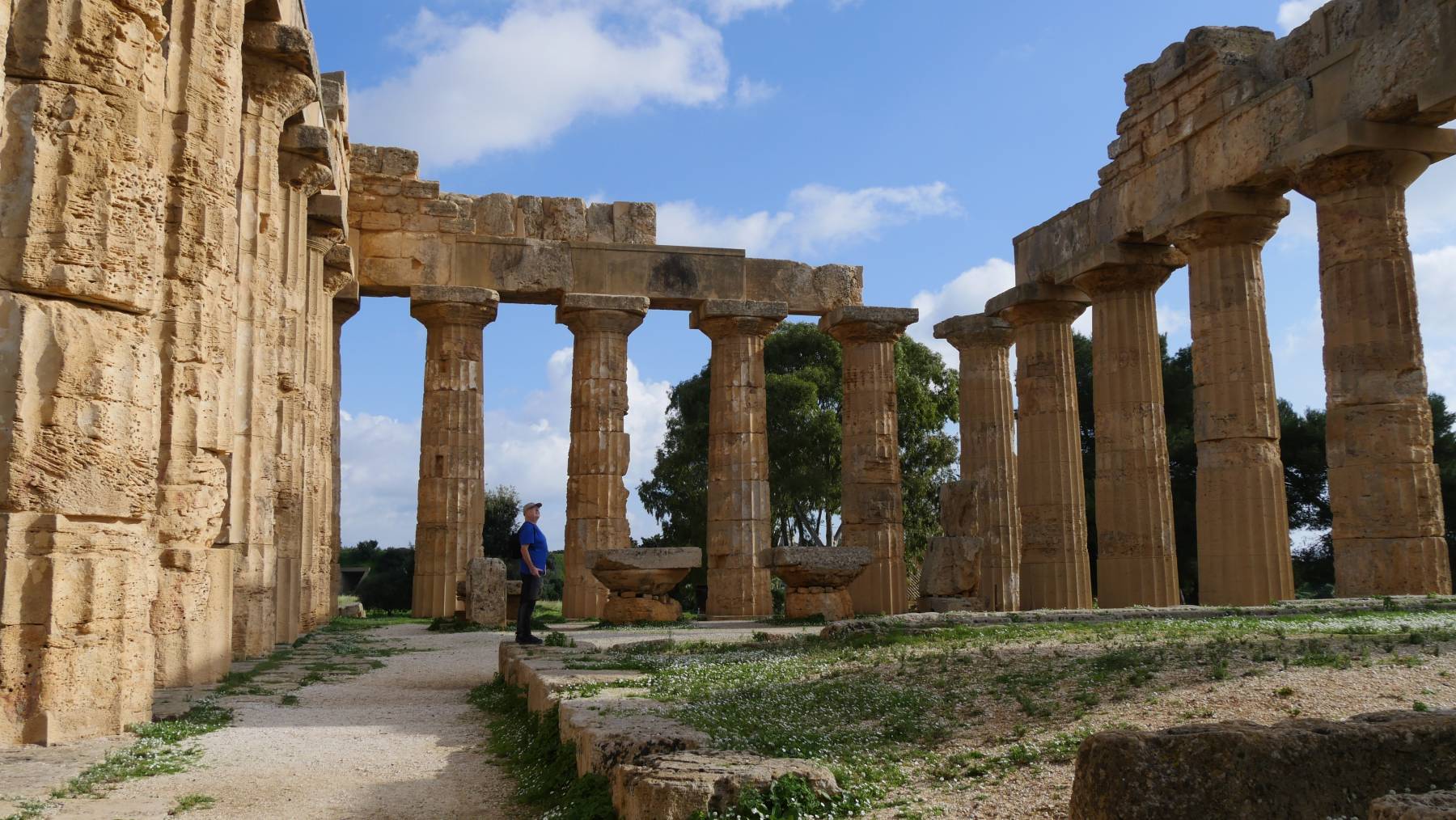 Selinunt, als eine der größten archäologischen Ausgrabungsstätten des Mittelmeerraumes, haben wir uns für eine richtige Besichtigung rausgesucht. Selinus war eine griechische Stadt aus dem 7. Jh. v. Ch.. Insgesamt 8 km bewegen wir uns durch das Gebiet, mit der Besonderheit, frei durch die Ruinen und teilweise restaurierten Tempel gehen zu können. Den Shuttleservice, für 6 Euro zusätzlich, lehnen wir freundlich ab. Fand der Ticketverkäufer nicht so gut. Neben dem Eintritt von € 8 (kürzlich erhöht), sollen wir noch € 3 für eine Karte ausgeben. Der Zustand der gesamten Anlage erinnert mich an meinen letzten Besuch – 1976. Immerhin nur wenig verwitterte Schilder, allerdings nur auf Italienisch und Englisch. Die vorher heruntergeladene App aller Ausgrabungsstätten Siziliens ist nur auf Englisch und völlig sinnfrei ohne Inhalte. Die QR-Codes auf den Schildern führen zu der Nachricht: „Das Ziel wurde stillgelegt“. In der modernen digitalen Welt soll man wohl lieber Bücher und Karten kaufen. Das erinnert mich doch ein wenig an Deutschland. Uns hat der Besuch insgesamt aber gefallen, da wir ihn als kostenpflichtige Wanderung mit kulturellem Hintergrund betrachten.