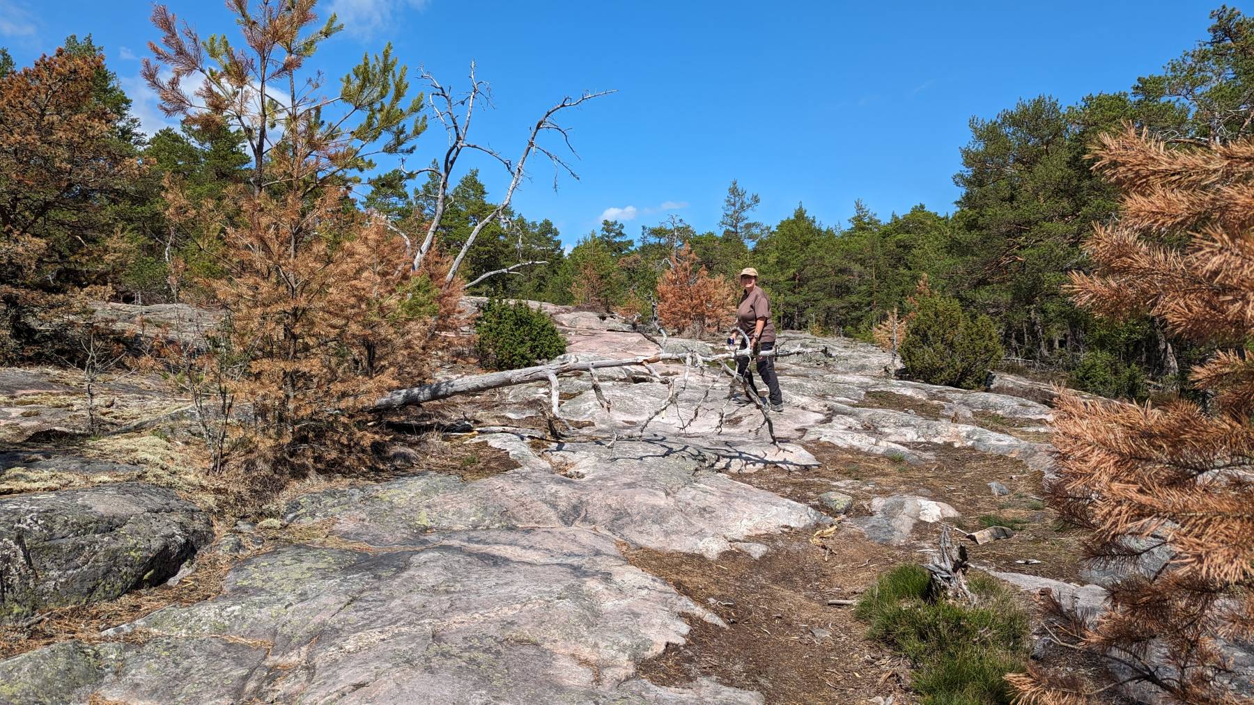 Wir waren noch nie an der finnischen Küste. So lernen wir die sehr schöne Schärenküste kennen. Man erwartet in Finnland Einsamkeit und Mücken. Beides finden wir nicht. Das zweite ist soweit ja gut. Aber von der Vollheit der Südküste sind wir doch sehr überrascht. Die fast ausnahmslos finnischen Fahrzeuge suchen hier weniger Sandstrände, hier ist halt alles steinig oder schilfig, sie wollen zuvorderst zu ihren Hütten und Booten.