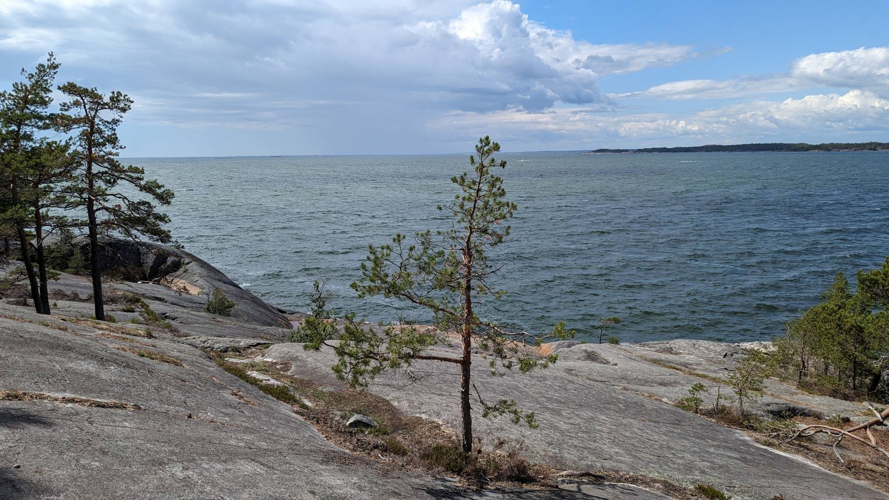 Wir waren noch nie an der finnischen Küste. So lernen wir die sehr schöne Schärenküste kennen. Man erwartet in Finnland Einsamkeit und Mücken. Beides finden wir nicht. Das zweite ist soweit ja gut. Aber von der Vollheit der Südküste sind wir doch sehr überrascht. Die fast ausnahmslos finnischen Fahrzeuge suchen hier weniger Sandstrände, hier ist halt alles steinig oder schilfig, sie wollen zuvorderst zu ihren Hütten und Booten.
