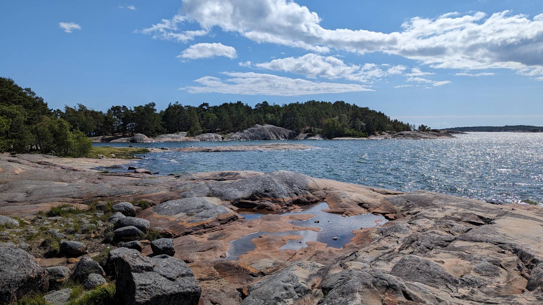 Wir waren noch nie an der finnischen Küste. So lernen wir die sehr schöne Schärenküste kennen. Man erwartet in Finnland Einsamkeit und Mücken. Beides finden wir nicht. Das zweite ist soweit ja gut. Aber von der Vollheit der Südküste sind wir doch sehr überrascht. Die fast ausnahmslos finnischen Fahrzeuge suchen hier weniger Sandstrände, hier ist halt alles steinig oder schilfig, sie wollen zuvorderst zu ihren Hütten und Booten.