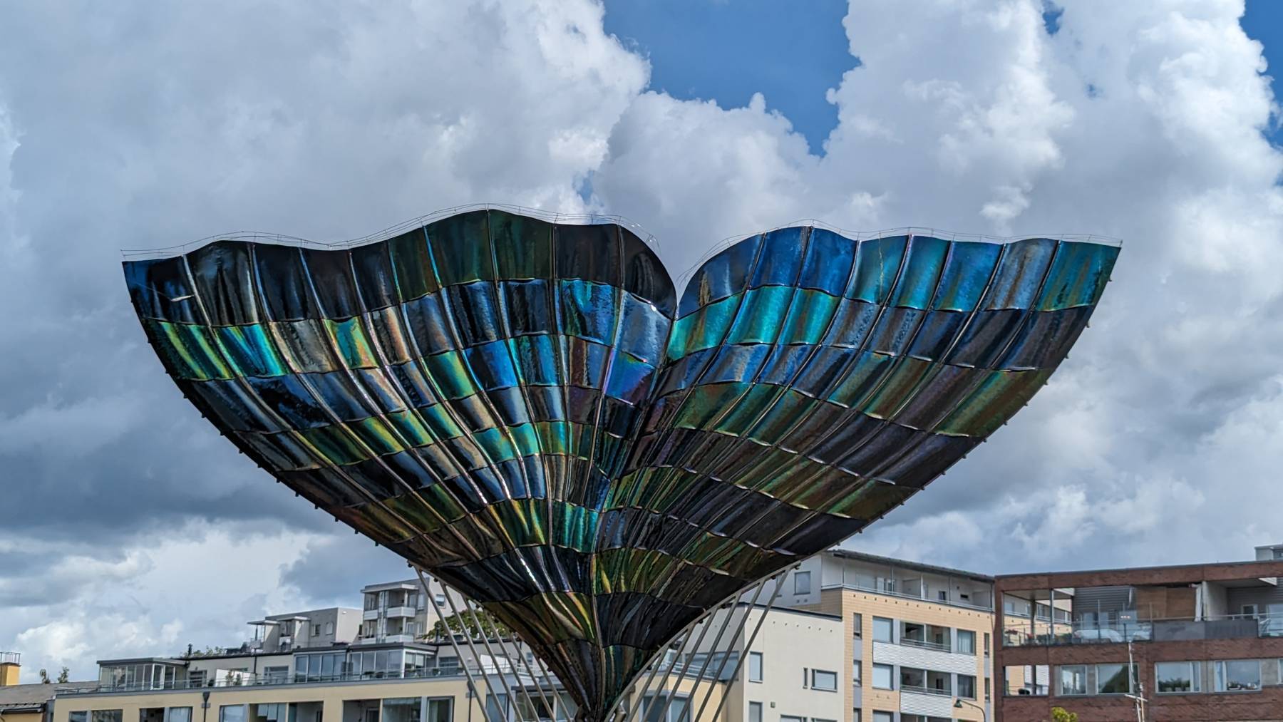 Wir kommen bereits mittags in Helsinki an. Während der Überfahrt überlegen wir, ob wir Lust auf einen weiteren Stadtspaziergang haben. Wir waren ja schon mal da – 1993. So suchen wir uns dann doch einen kostenlosen Parkplatz unweit des Zentrums. Nach den drei baltischen Hauptstädten fällt uns direkt eine Vokabel zur Abgrenzung ein: weltstädtisch. Breit angelegte Straßen, moderne Architektur und mächtige Bauten. Helsinki ist sehr voll und sehr teuer. Nach 10 km sind wir auf der Suche nach etwas zu „Beißen“. In einem kleinen, einfachen Lokal gucken wir auf die Karte: Pizza Margherita € 17,– – Nein. Also auf dem Markt zu einem Crêpes-Stand: Crêpe mit Nutella € 10,–. Vielleicht doch etwas Gesundes!? Eine kleine Schale, 250g, Erdbeeren für € 8,–. Wir haben uns entschieden: Spaghetti mit Tomatensoße im Womo.