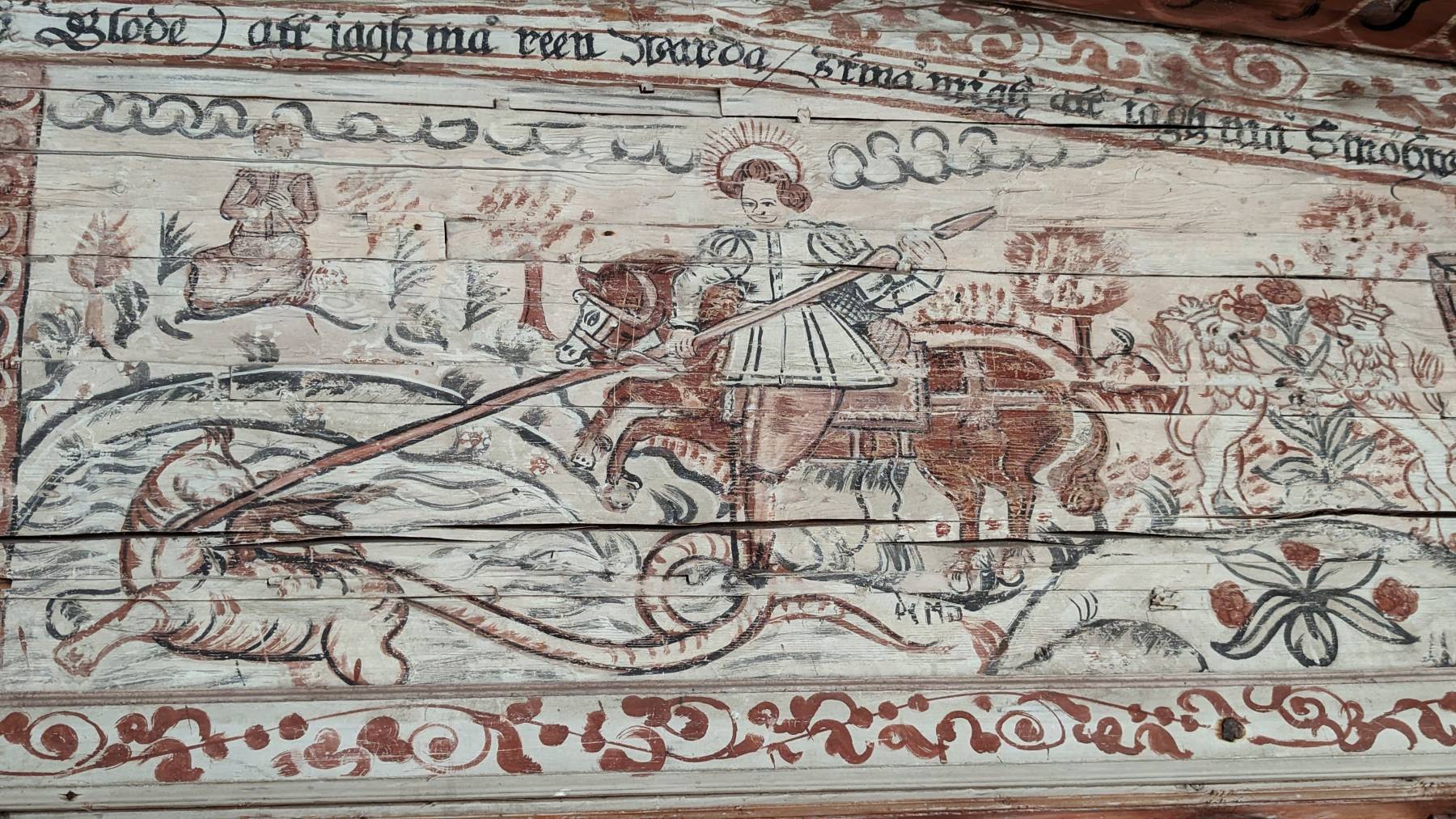 Der heilige Georg der mit einem Drachen kämpft