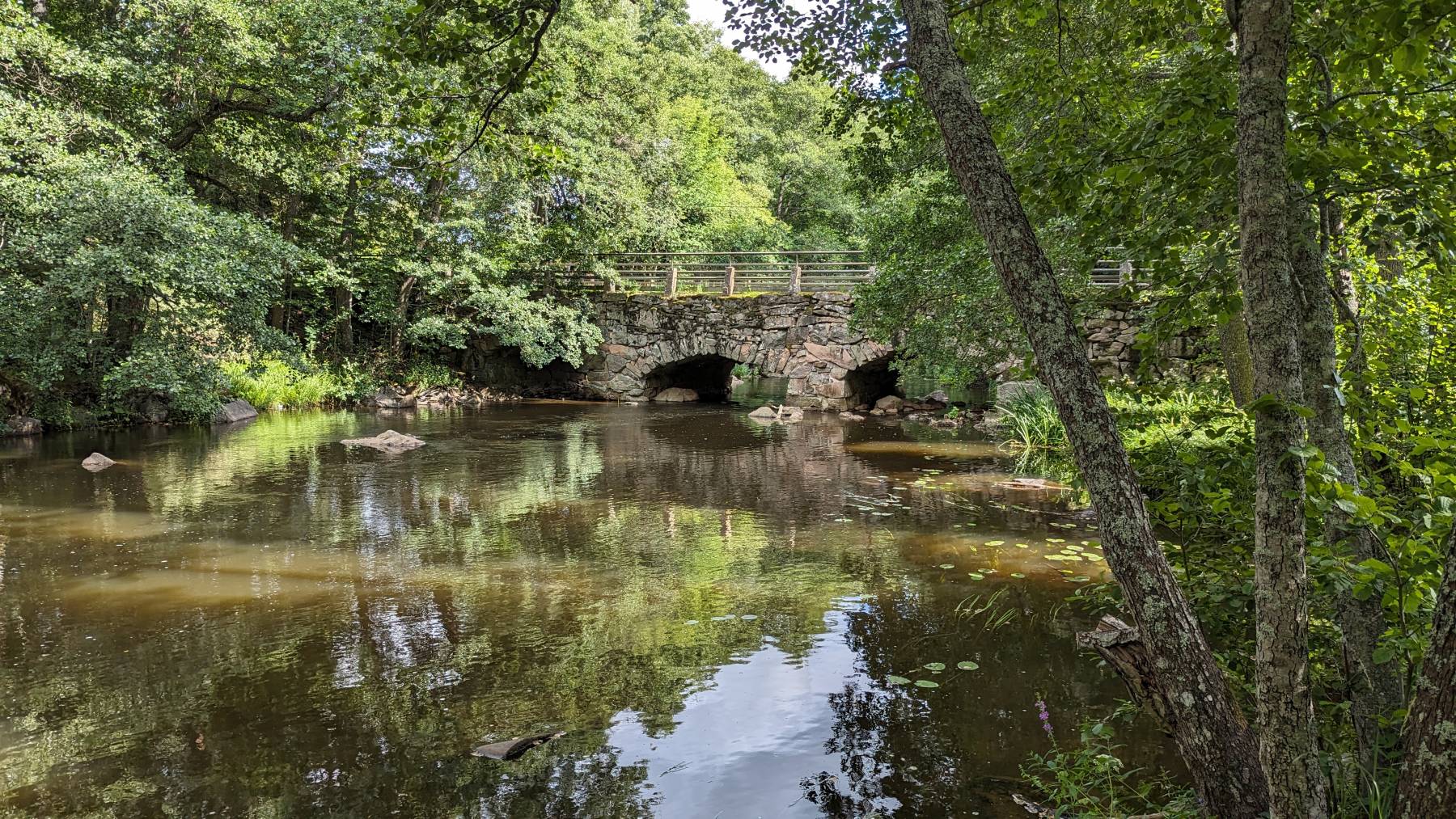 mit seiner kleinen restaurierten 3-Bogen-Brücke aus Stein